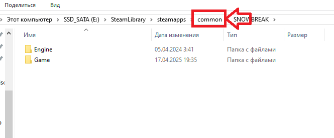 3. Перед нами открывается директория игры. Наша цель попасть в предыдущую папку "common"