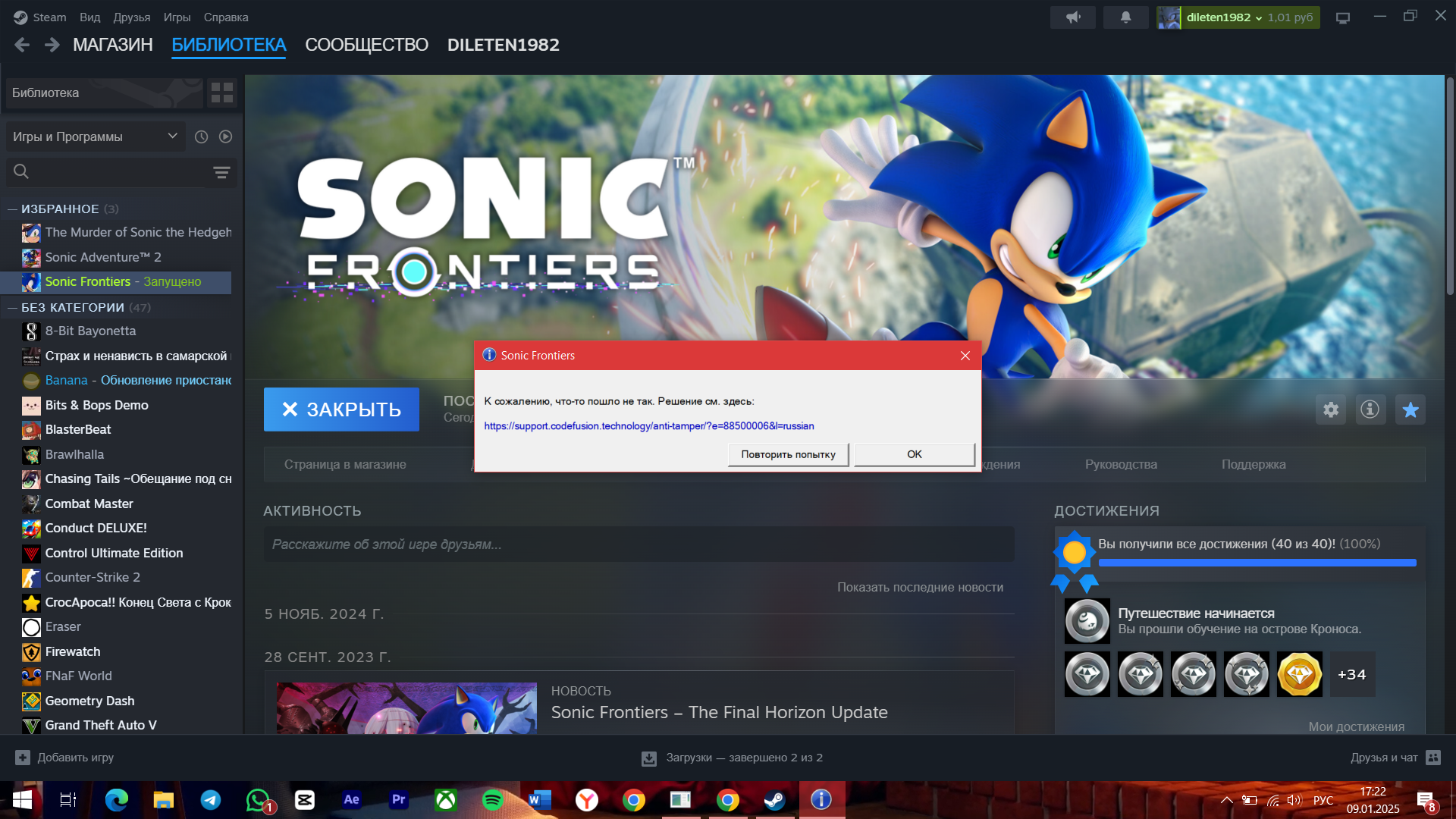 Буквально вчера купил оффлайн аккаунт с Sonic Frontiers, хотел опробовать игрушку, однако после скачивания столкнулся с этой проблемой: