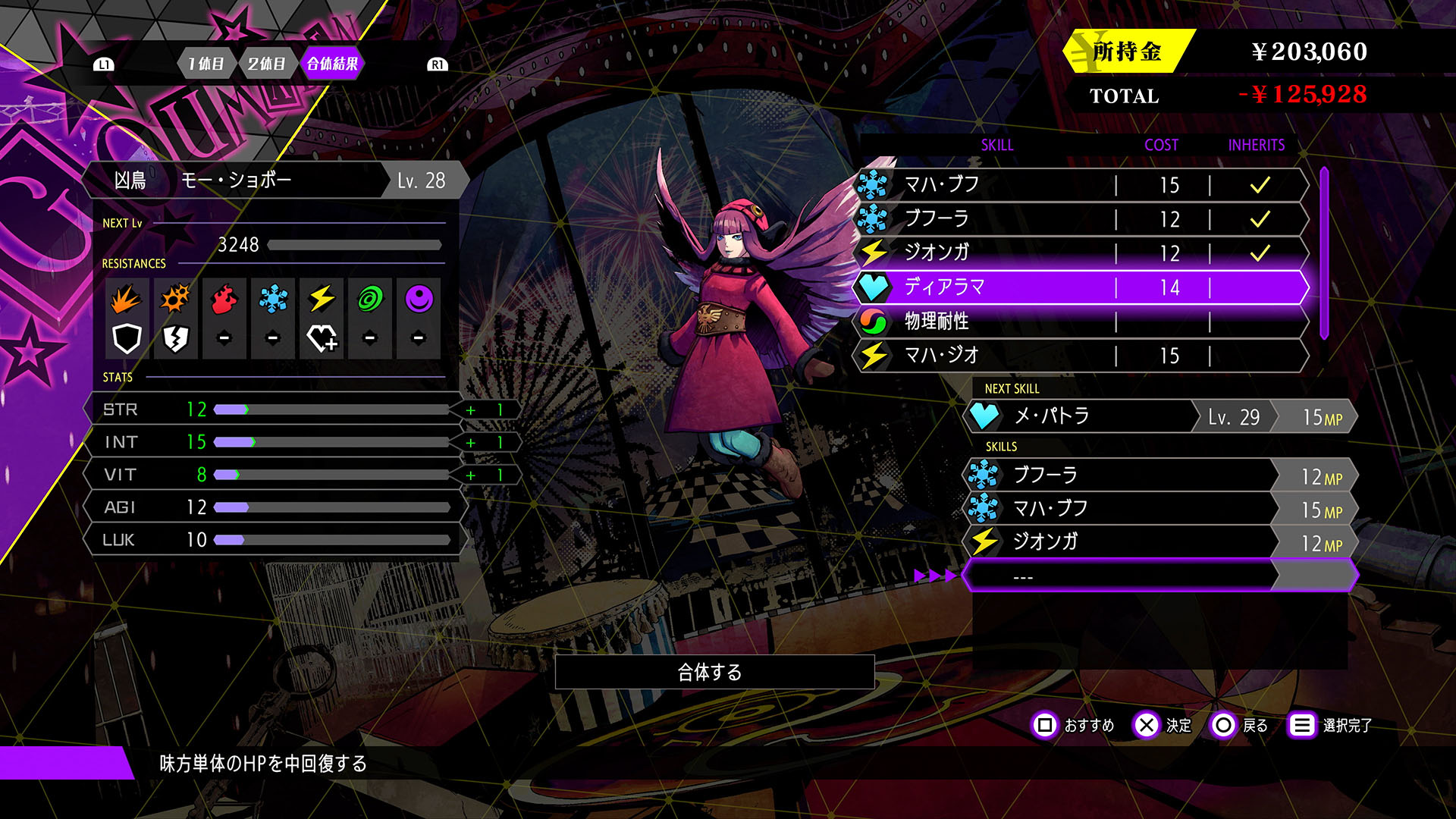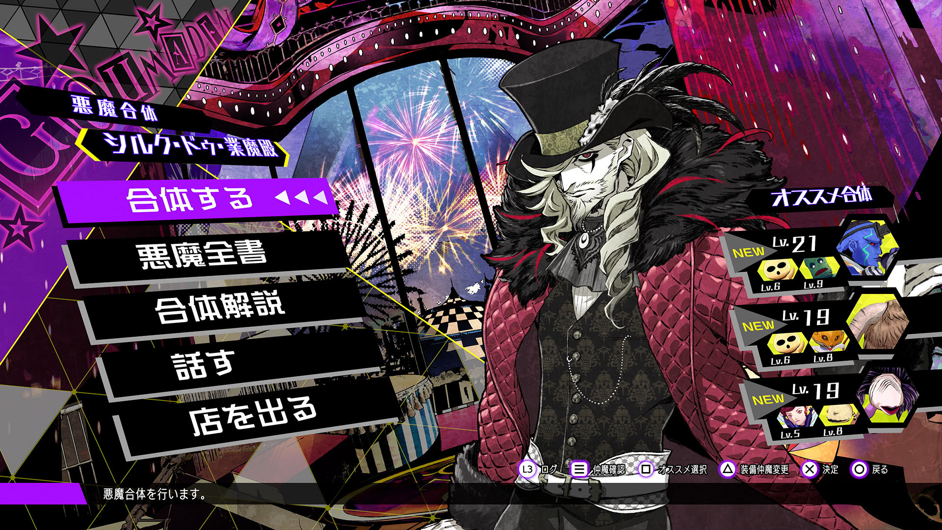 Затем мы увидим больше слияний демонов, которые можно сделать в Cirque du Gumaden в Царстве Роппо. Вы можете выполнять как обычные слияния, так и специальные, для которых требуются определенные демоны.
