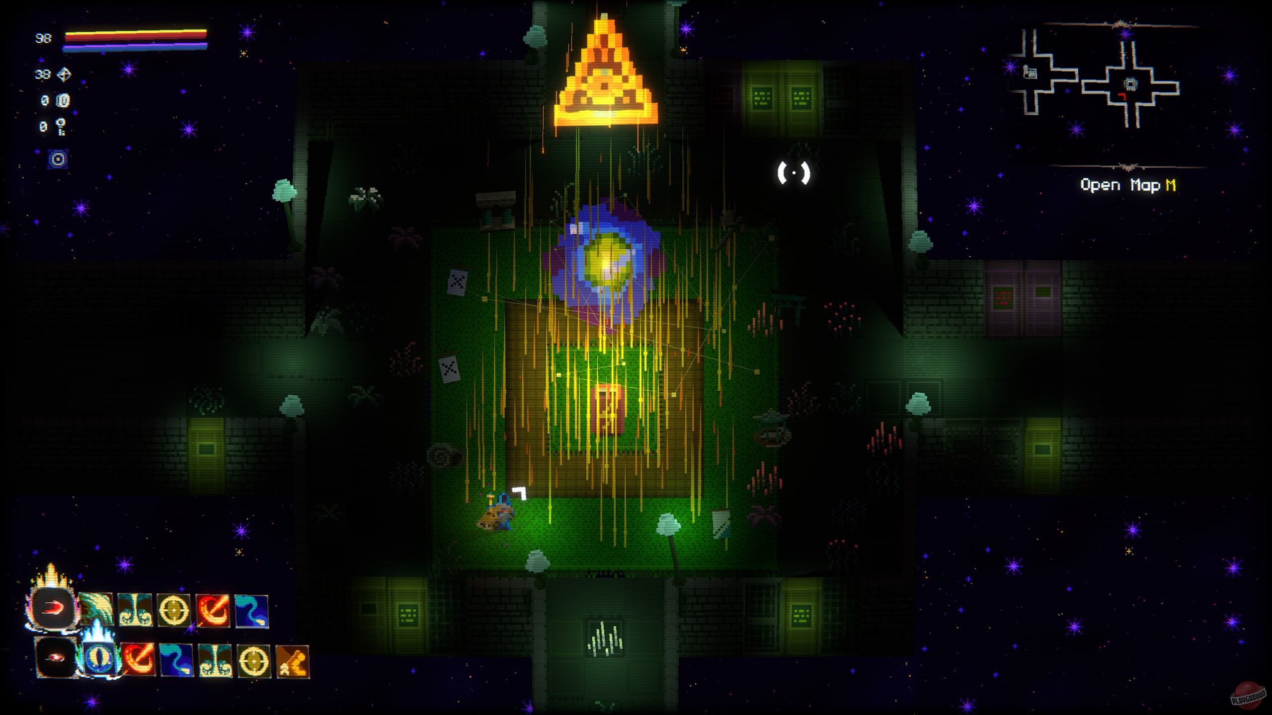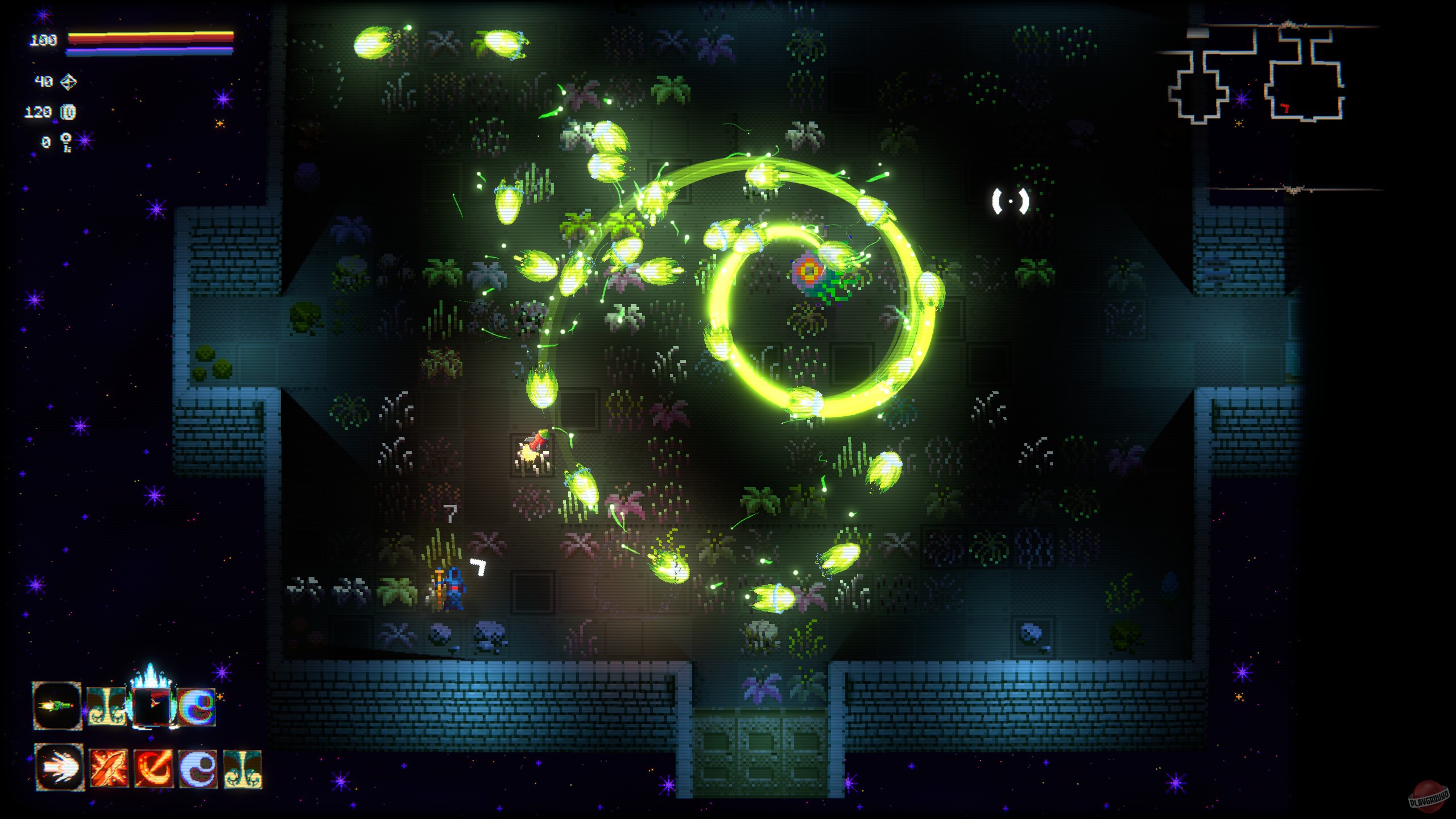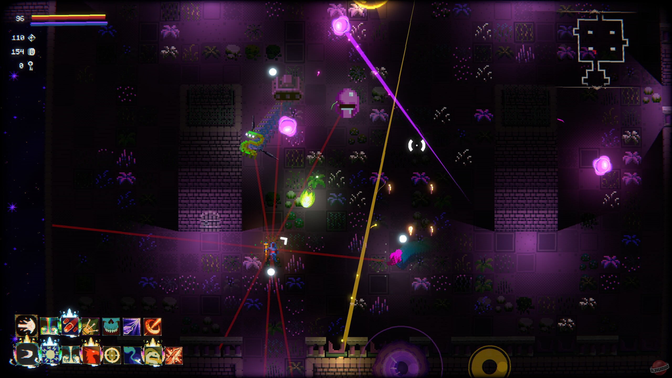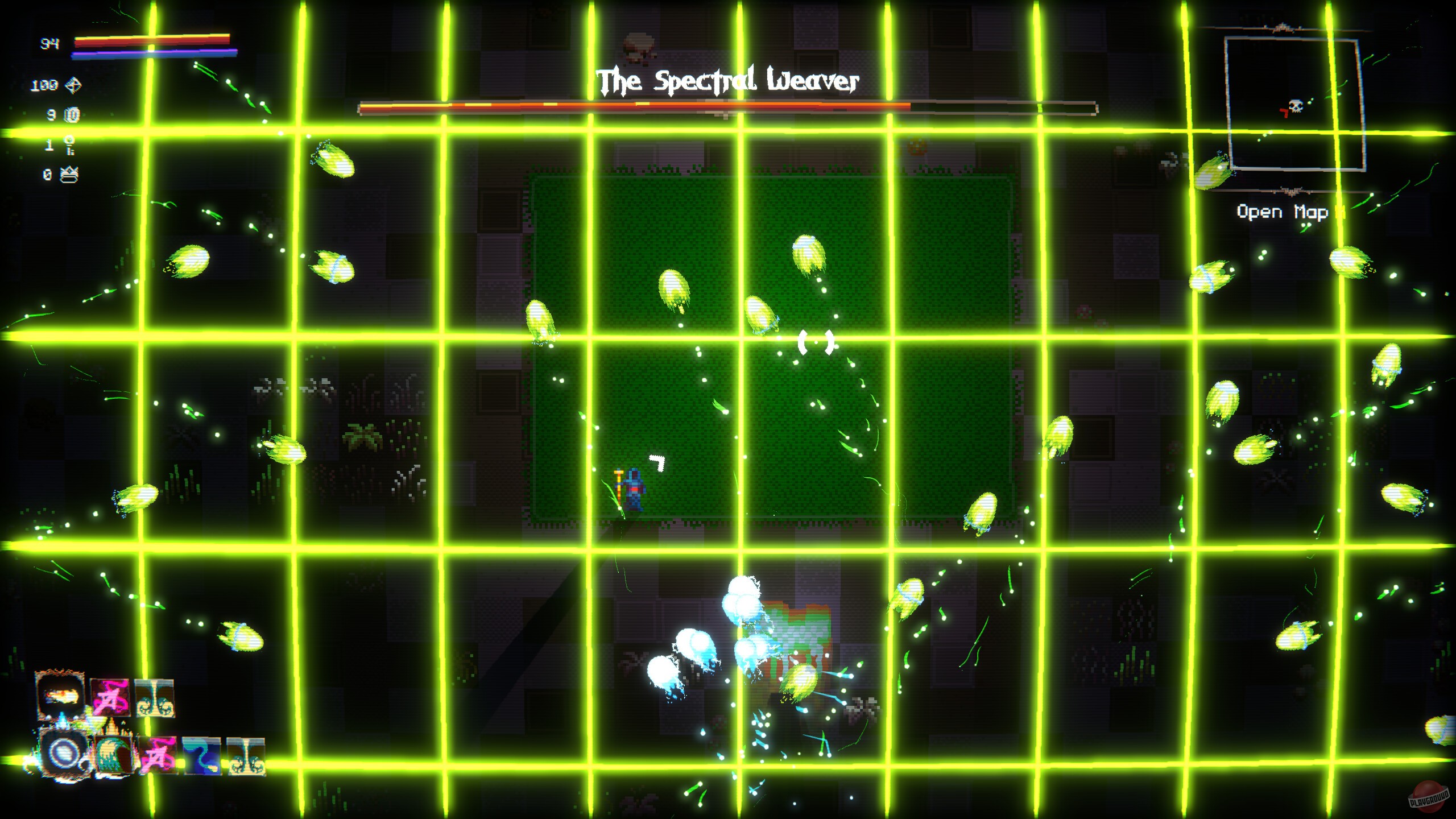 Сама игра — это смесь рогалика и «пулевого ада». То есть вы бегаете по процедурно генерируемым подземельям, а экран при этом заполнен магическими снарядами, между которыми нужно лавировать. А главная фишка spellloom — конструктор заклинаний. У вас есть особый гримуар Spellbinder, через который можно комбинировать разные магические компоненты и создавать собственные заклинания. Цепную молнию Взрывы по области? Снаряды с рикошетом? Вот примерно такие вещи вы сможете делать. Причём можно миксовать эффекты как угодно — добавлять щиты, менять типы урона, настраивать радиус поражения.