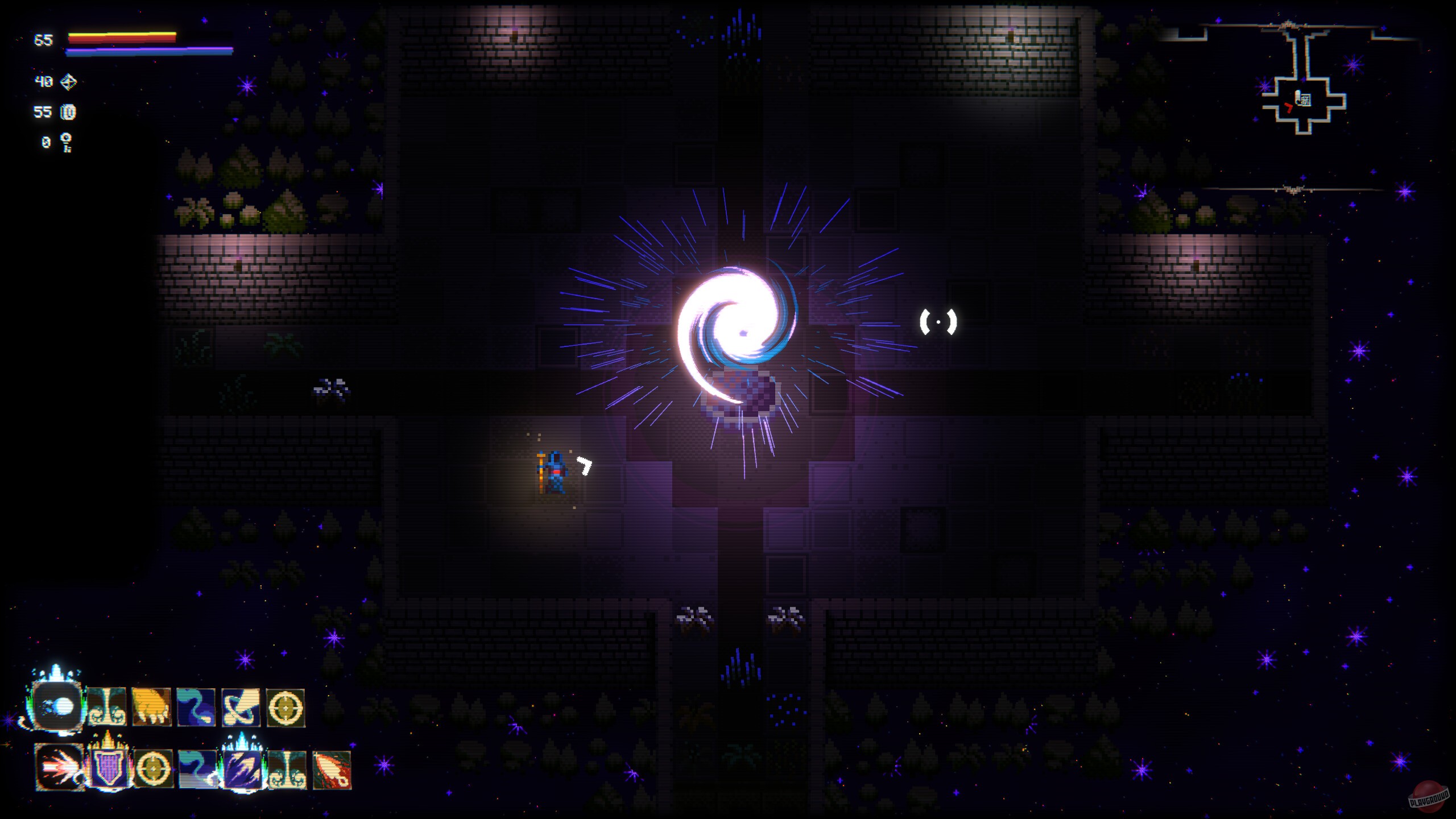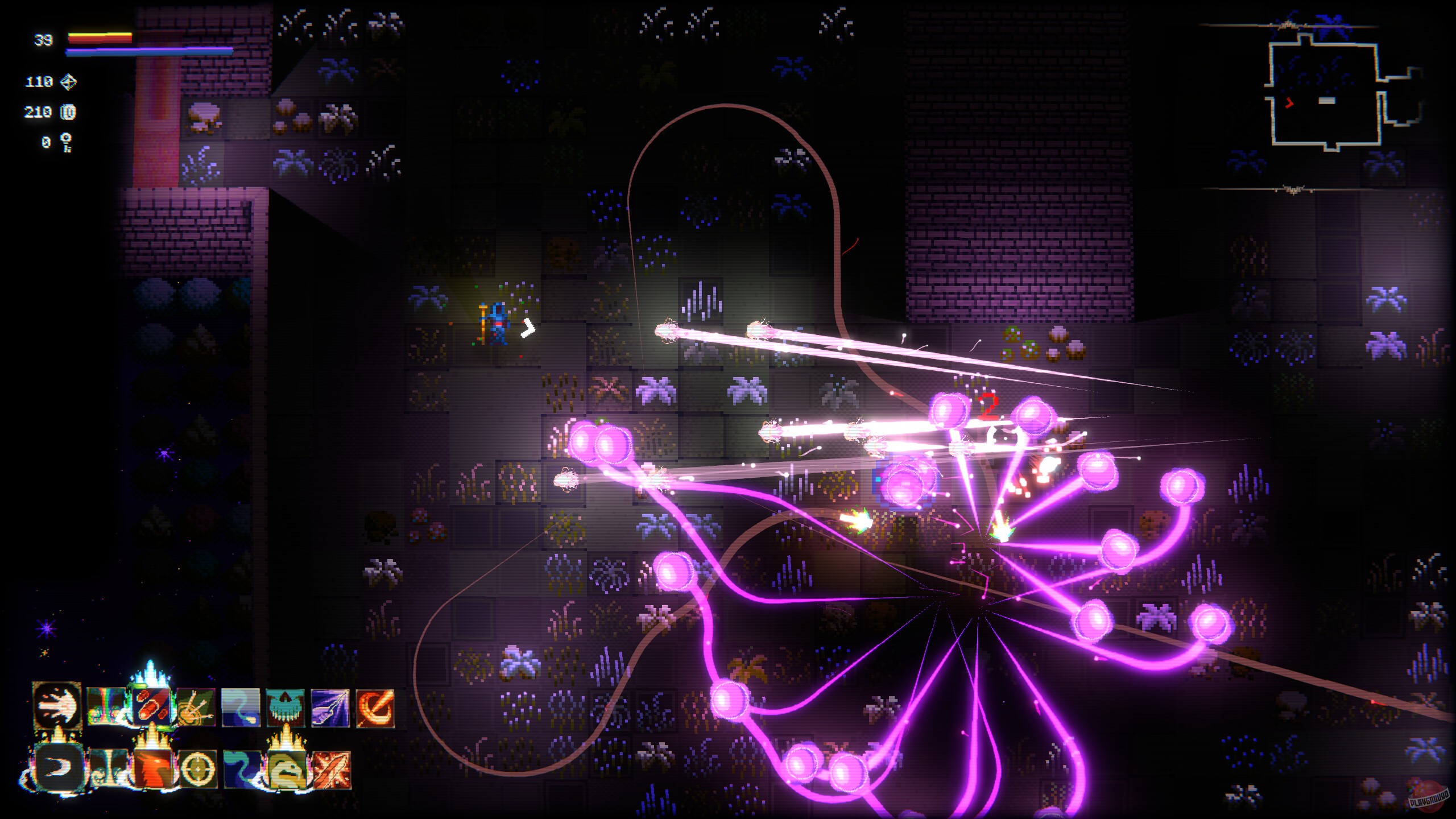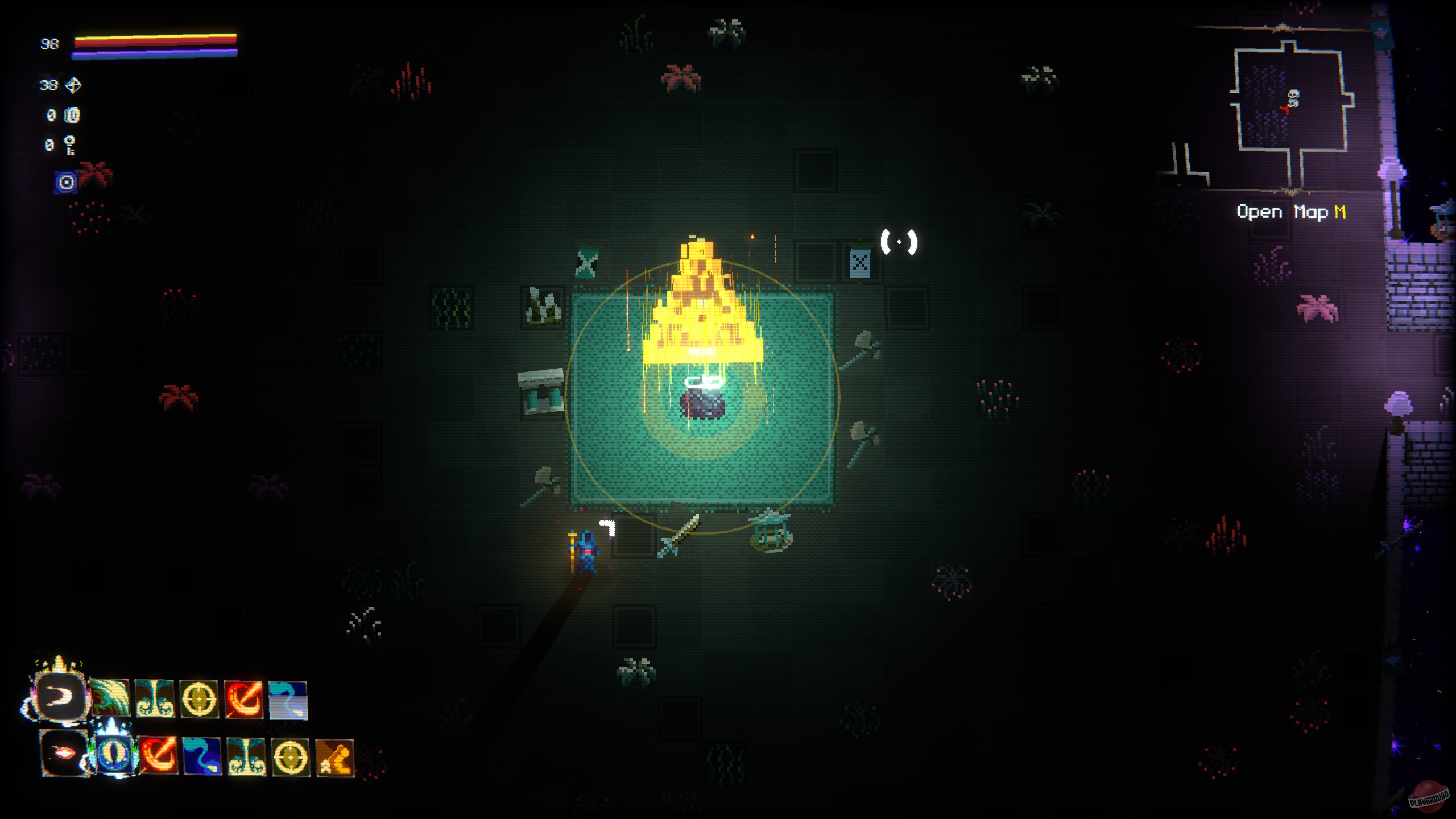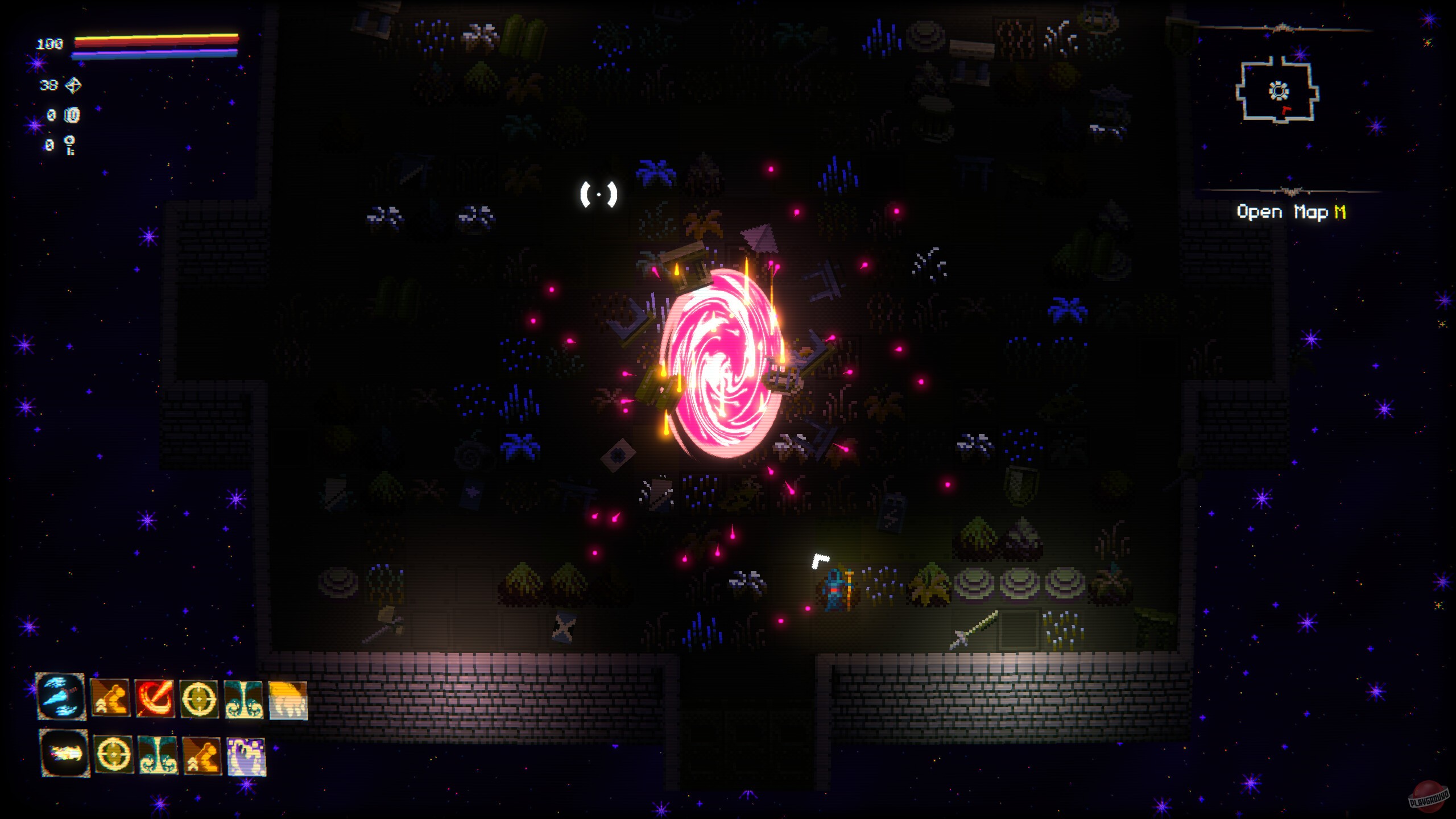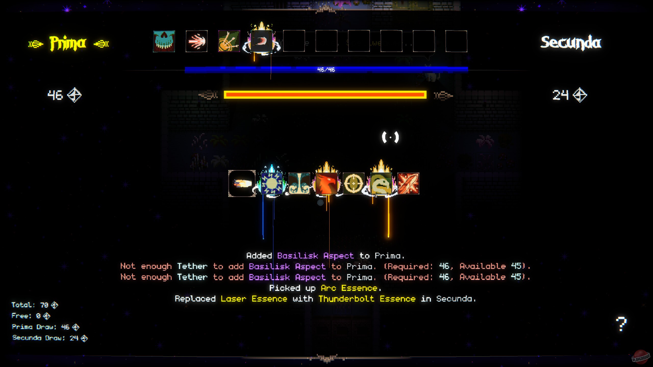 Сама игра — это смесь рогалика и «пулевого ада». То есть вы бегаете по процедурно генерируемым подземельям, а экран при этом заполнен магическими снарядами, между которыми нужно лавировать. А главная фишка spellloom — конструктор заклинаний. У вас есть особый гримуар Spellbinder, через который можно комбинировать разные магические компоненты и создавать собственные заклинания. Цепную молнию Взрывы по области? Снаряды с рикошетом? Вот примерно такие вещи вы сможете делать. Причём можно миксовать эффекты как угодно — добавлять щиты, менять типы урона, настраивать радиус поражения.
