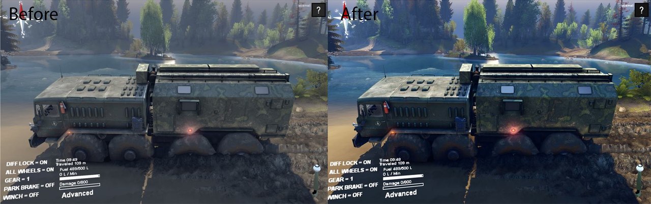 то что показано на скринах я делаю в настройках оригинальной игры убавив яркость и прибавив контрастность, в инете нет еще не одного стоящего мода на графику для спинтирес, причем они еще умудряются как то тормозить игру)