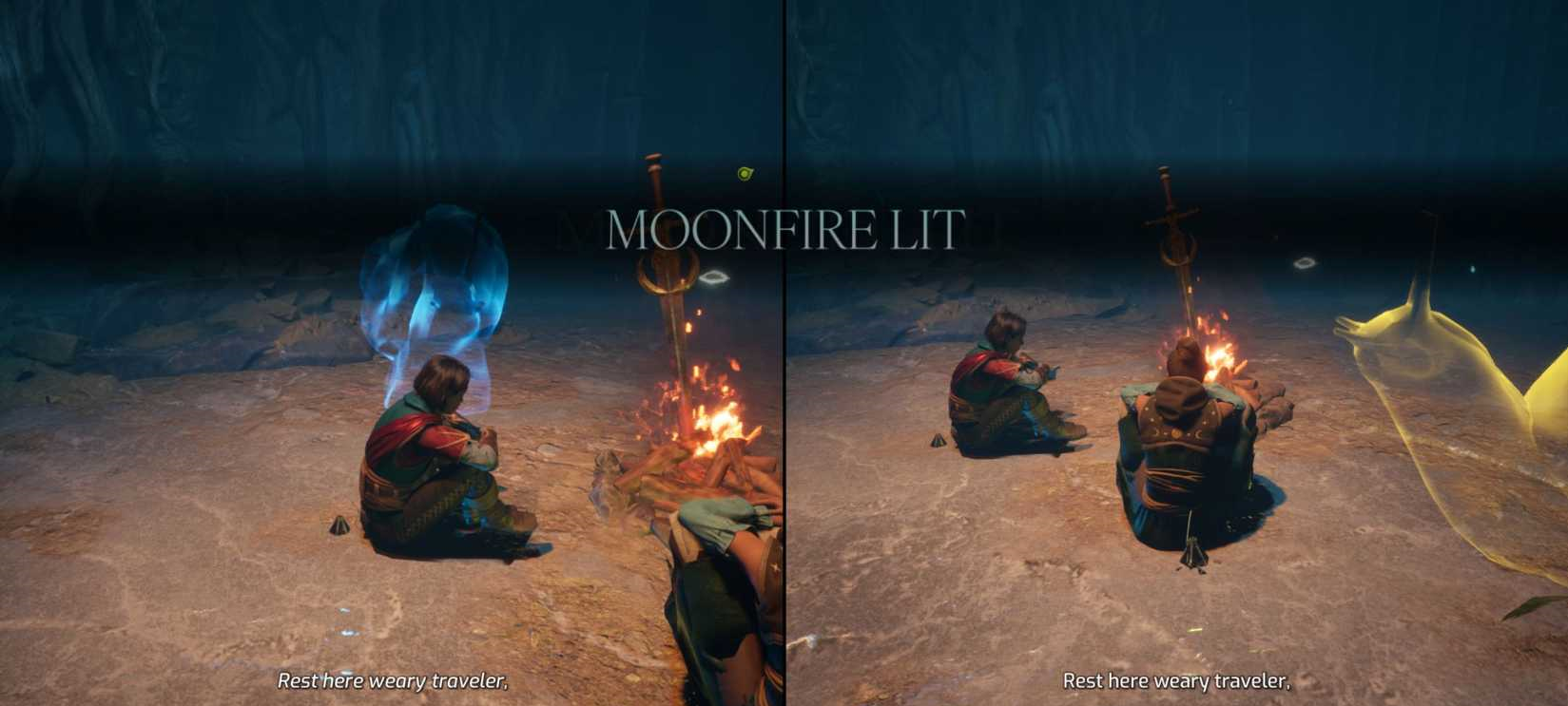 Дополнительно в локации The Hollow можно наткнуться на подобный костер. Если персонажи решат у него отдохнуть, появится знакомая надпись в стиле Dark Souls: «Лунный огонь горит». В этот момент Зои даже произносит фразу: «Отдохни, странник, ведь впереди тебя ждут великие испытания» — явный намек на философию отдыха и подготовки перед следующими испытаниями, знакомую каждому поклоннику серии.
