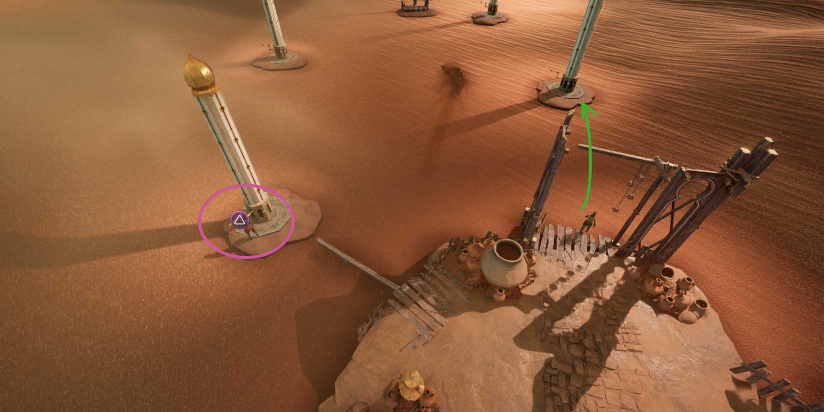 В самом начале приключения Мио и Зои сталкиваются с грозными «песчаными акулами», которые своим внешним видом и поведением вызывают явные ассоциации с гигантскими червями из «Дюны». Чтобы отвести от себя угрозу, герои вынуждены использовать массивные колонны, создающие вибрации в песке, что отвлекает существ. Поклонники культовой саги наверняка заметят это сходство — ведь именно так в фильмах и книгах заманивают песчаных червей.