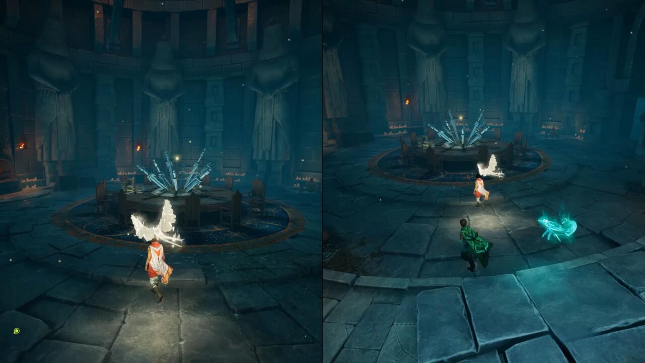 На уровне The Hollow в Split Fiction герои встречают похожий круглый стол, украшенный мечами. Мио с любопытством спрашивает: «Ого, это какое-то убежище?», явно намекая на Круглый стол из Elden Ring, где игроки могли спокойно взаимодействовать с NPC без угрозы нападения.