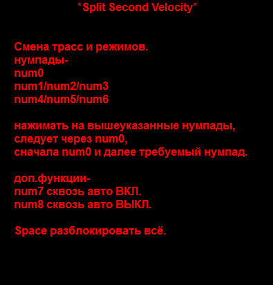Разблокировать всё/ разблокирует все авто,все режимы в быстрой гонке,все эпизоды в одиночной игре.
