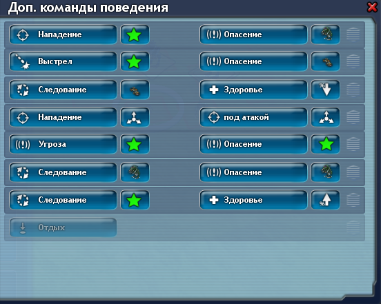 Например для создания реального поведения диких животных, можно использовать следующий набор поведения.