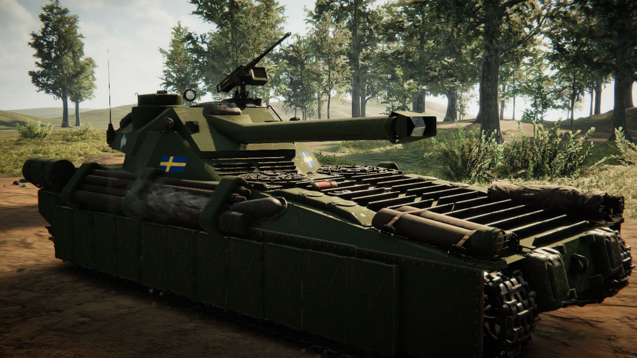 Выдуманный проект шведского среднего танка с качающейся башней и МЗ (Механизмом Заряжания). Танк сделан на основе UDES 15/16 из World Of Tanks.