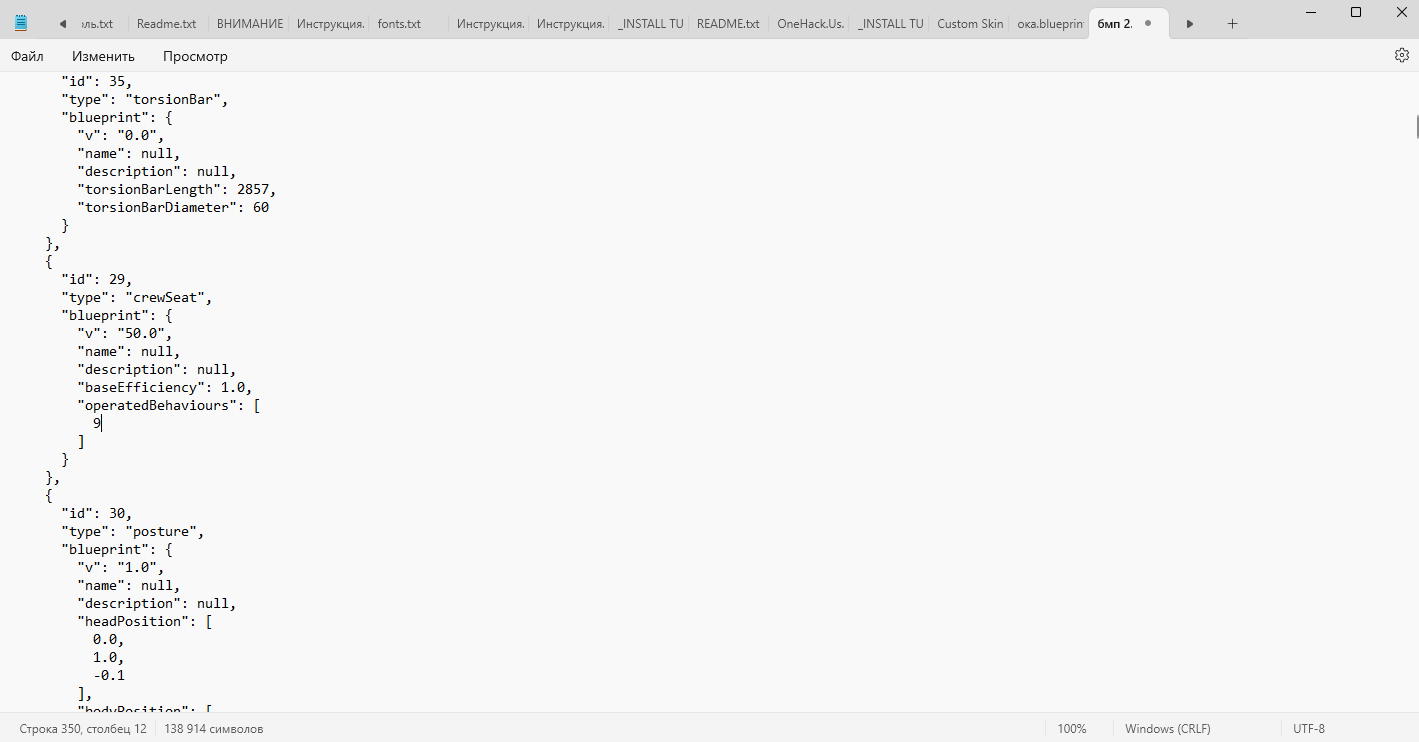 2) Листаем вниз пока не найдем строчку "id": "CRW". Это данные экипажа танка.