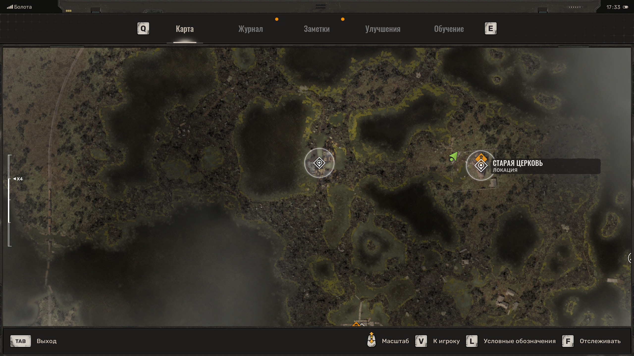 Увеличенный для GP37 Болота - церковь - кирпичное строение - дверь которую открываешь выстрелом через трещину по доске.