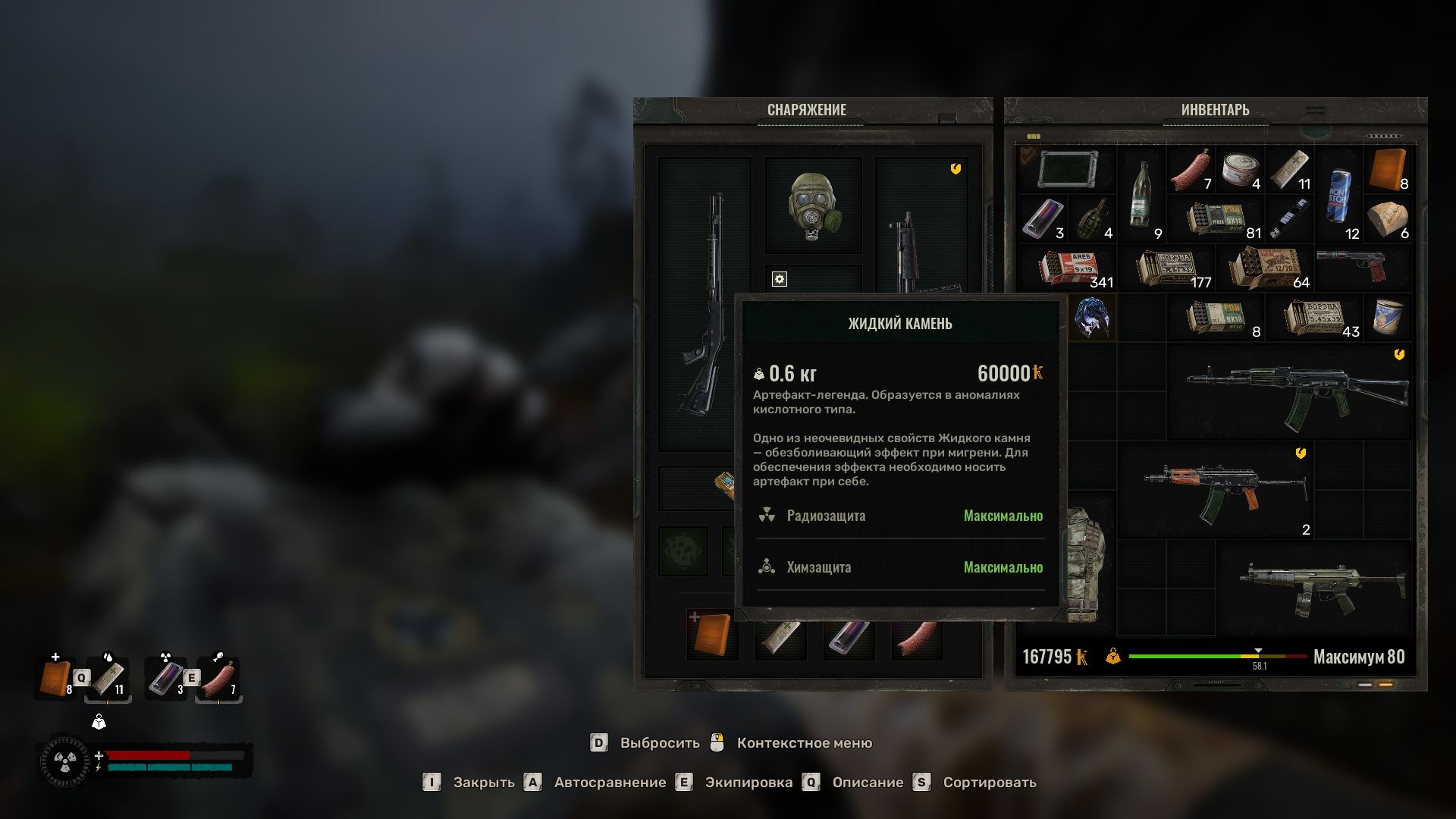 Для кислотных аномалий жидкий камень (нейтрализует один артефакт с максимальной радиацией либо скажем два с сильной, что актуально для самых модных костюмов с 5 кармашками, из которых два свинцовых, актуальный "булат", погуглите найдете.