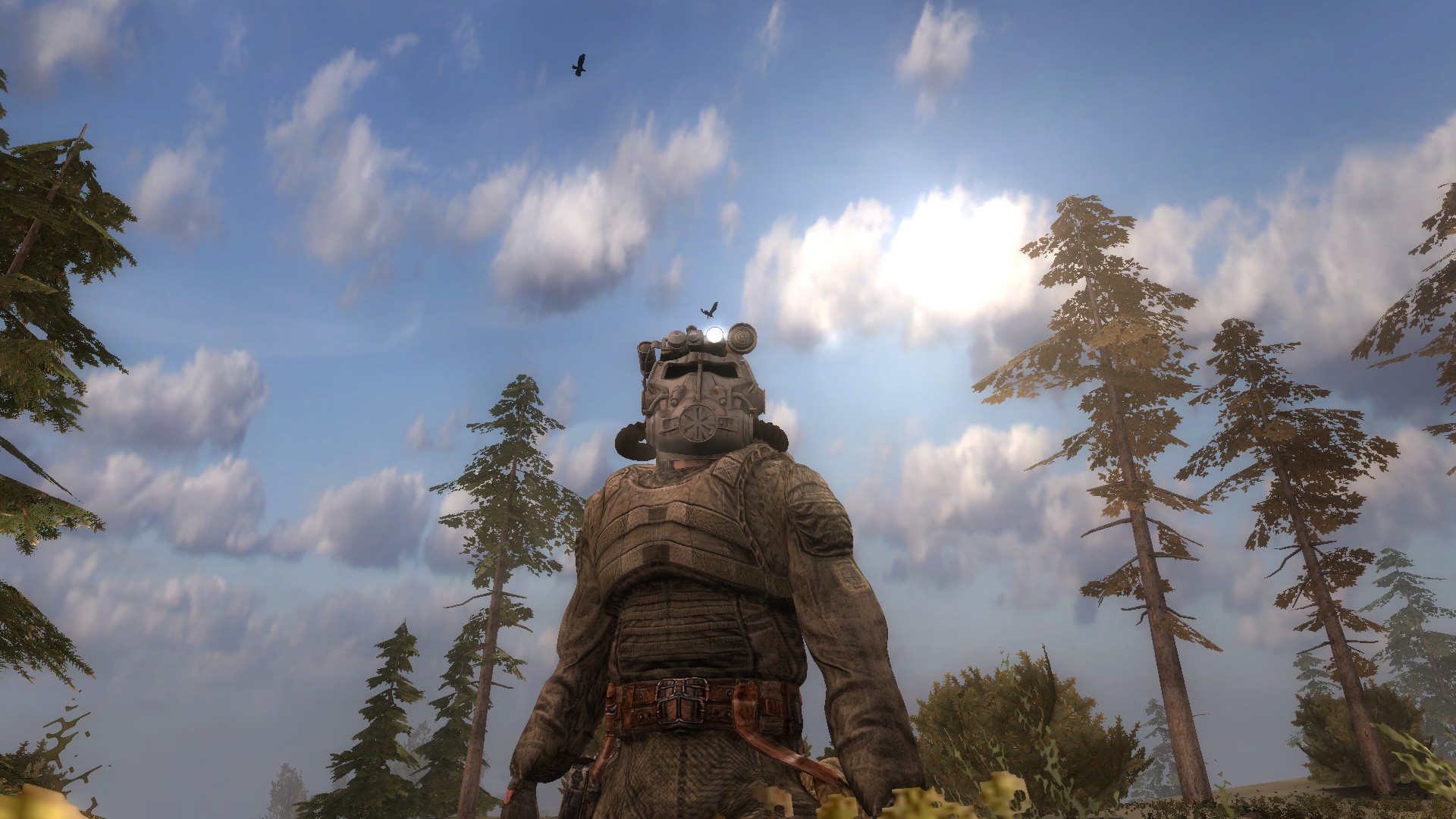 Поставил мод на динамические шлема, которые при надевании отображаются от второго и третьего лица, ну и не стал мелочиться, пошвырялся по интернету и искал модели шлемов, ну вот и теперь шлем от силовой брони T-60 теперь здесь. Умел бы я переносить персонажей нормально, ибо изменять позы моделям под позу сталкача я не умею :(, то приходится жить без силовой брони.