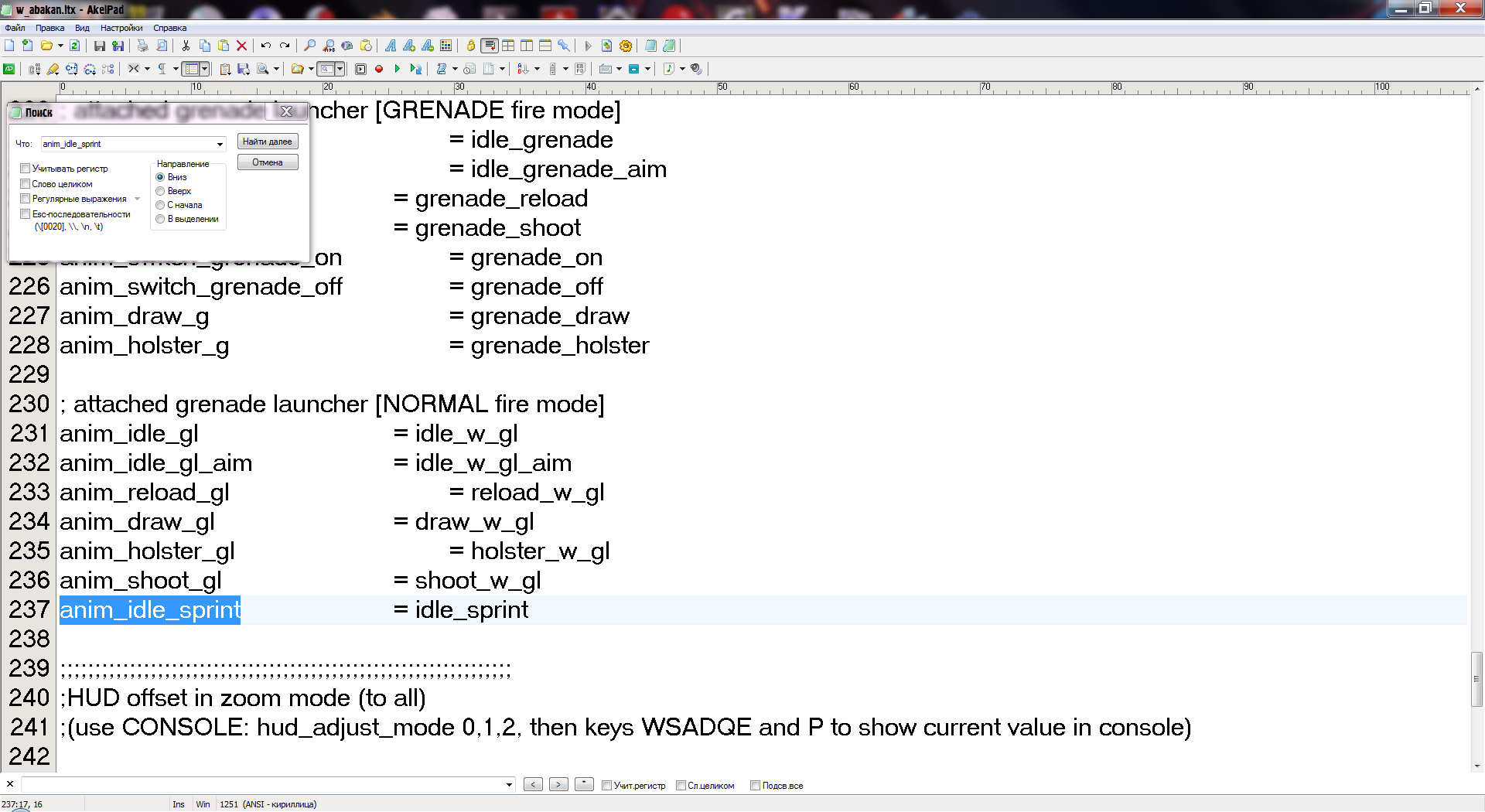 В секции какого-то оружия или худа предмета не найдена анимация бега, "idle_sprint".