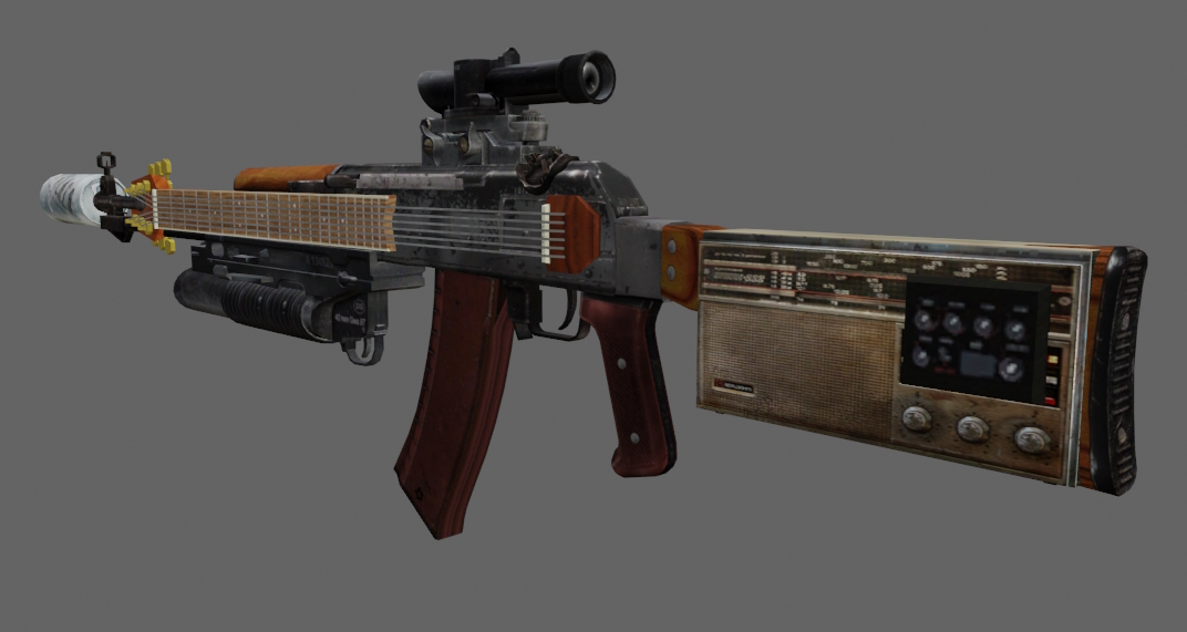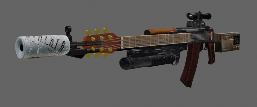 Это мой треш-мод на оружие (он пока не готов), который я решил сделать после того, как мой приятель скинул в чате трешовую картинку оружия, сделанную в фотошопе — чисто поржать. Я посмотрел и подумал: а почему бы не повторить что-то подобное в игре?