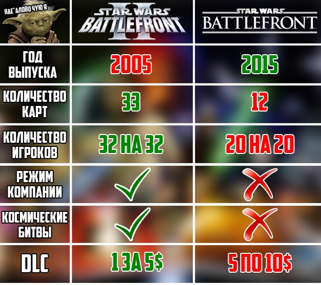1 - Star Wars Battlefront - это не Battlefield 4, и уж тем более не Battlefront и Battlefront II, это мутант которого надо пристрелить 2 - игра делается ДЛЯ ФАНАТОВ STAR WARS! - чтобы срубить бабла на выходе фильма. 3 - сравнение объёмов контента - контента собственно нет, сравнить того чего нет с тем что есть невозможно. 4 - По поводу заимствований ресурсов из серии Battlefield - модели, анимация, текстуры - мало? 5 - игра не привносит никакой новой механики - просто как утверждение 6 - Заблуждение о плохом балансе - нельзя заблуждаться о том чего нет