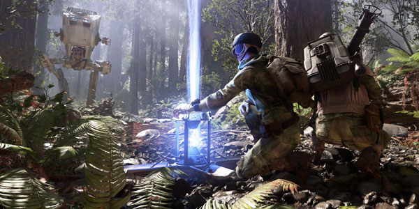 Карта, на которой могли играть участники — та самая, которую показывали в последнем трейлере — леса спутника Эндора. Сервер вмещал 40 игроков, 20-на-20 в сетевом режиме, название которого выяснить не удалось, потому что наш тестировщик не придал этому особого значения. Я бы назвал этот режим «Штурмовой захват», потому что раунд в нем проходит следующим образом.