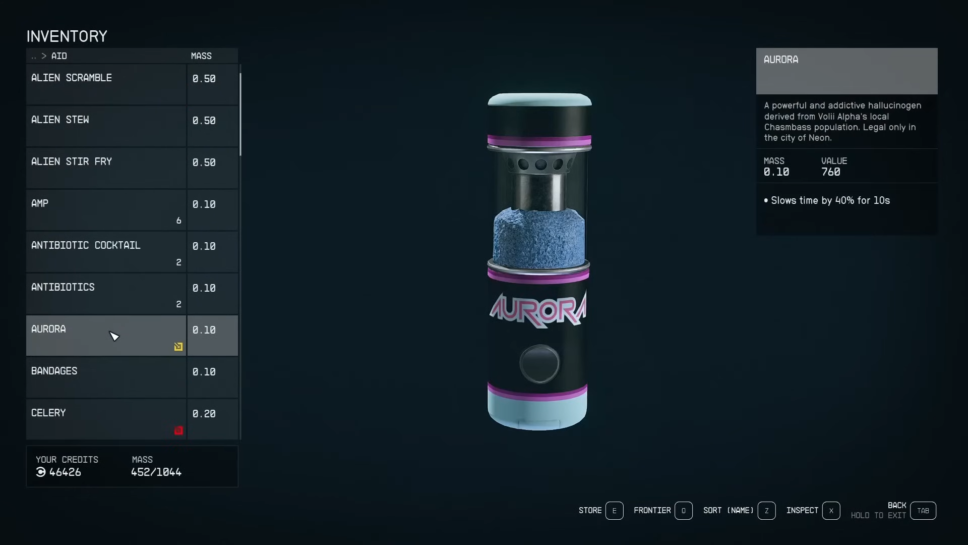 Чтобы вынести Аврору из Неона надо перед входом в сканирующую рамку открыть удалённо трюм корабля и просто переместить Аврору из инвентаря в трюм корабля минуя сканирование.