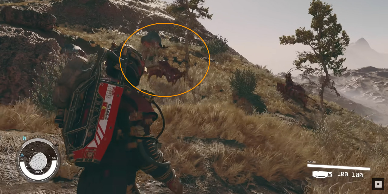 На видео с одной из планет мы видим, что местные травоядные, похожие на смесь муравья и богомола, поедают траву. То есть в их поведение заложено питание и как минимум поиск пригодного для этого корма. Неизвестно насколько глубоко проработано поведение инопланетного зоопарка, но скорее всего для многих хищников таким кормом будет игрок.