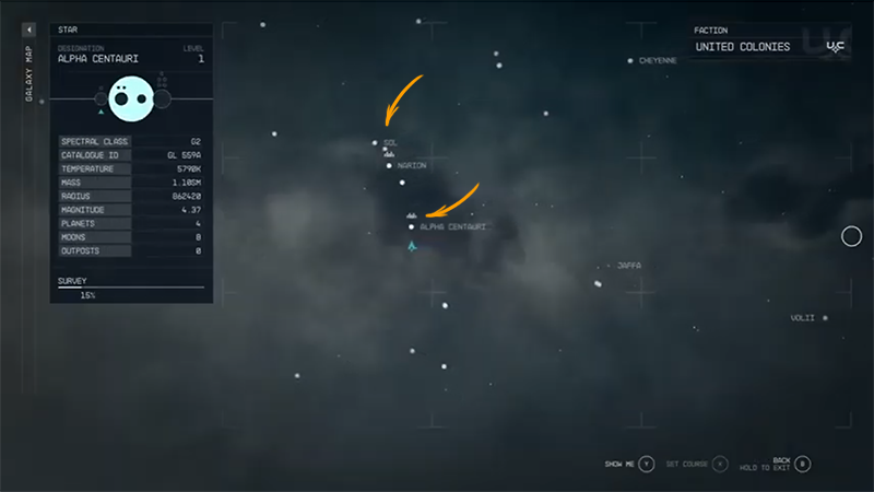 - По расположению систем Sol, Alpha Centauri и Vol II можно представить масштаб звездной карты, где происходят события игры, т.к. расстояние от Солнца до Альфа Центавры почти 5 световых лет, а человеческая цивилизация к началу событий Starfield освоила пространство "в 50 световых лет", то Vol II находится примерно на краю карты