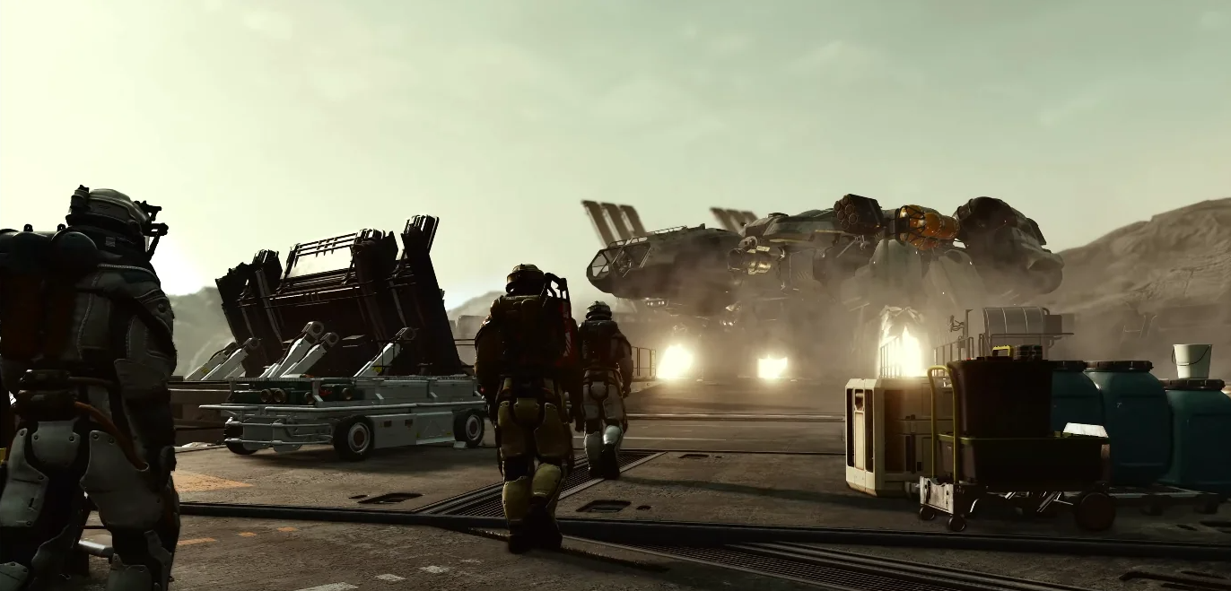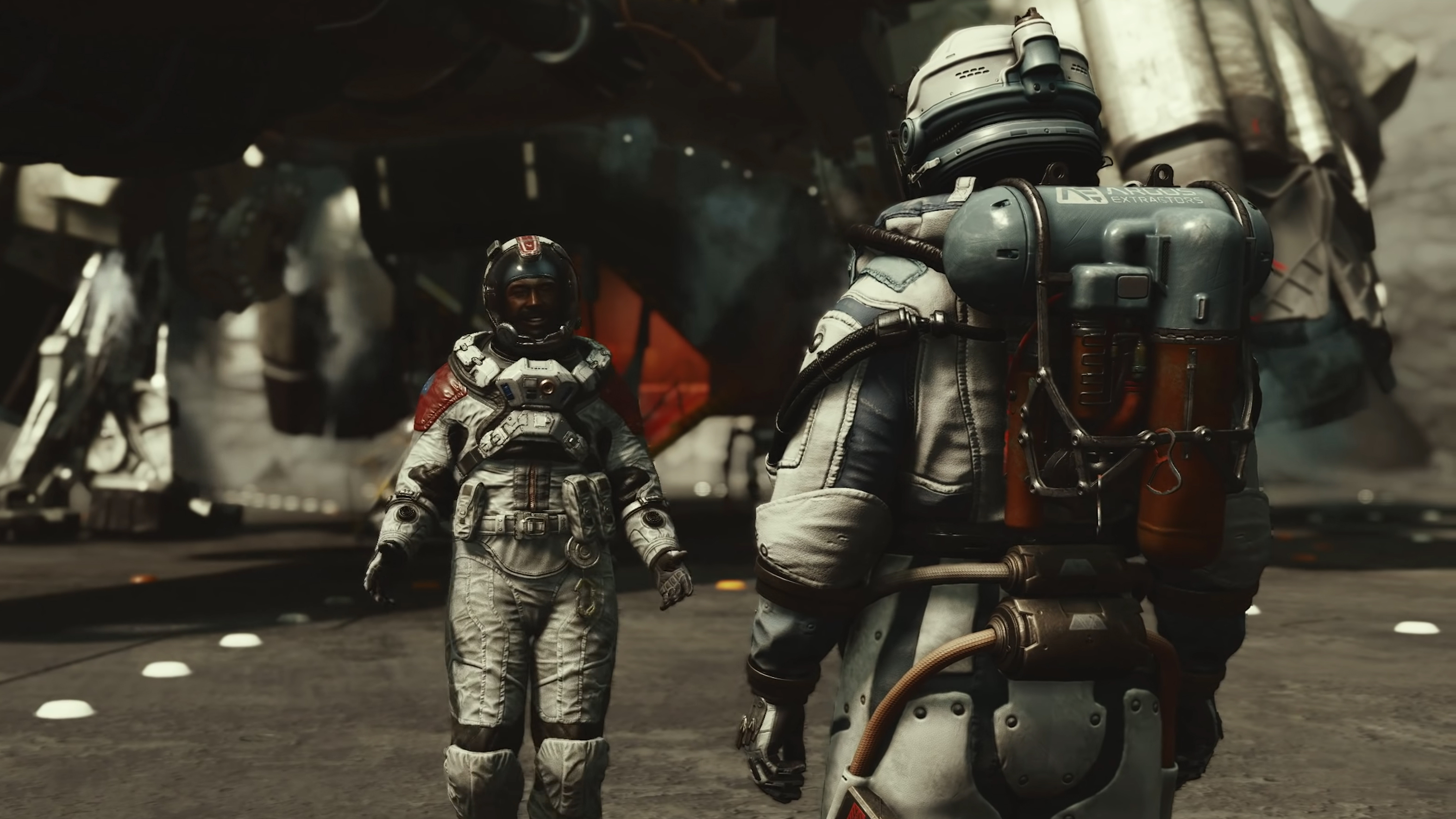 "Созвездие" отправляет кого-то на встречу с вами по поводу найденного вами артефакта. На 7:03 мы видим приземляющийся корабль, из которого выходит пилот в скафандре и говорит шахтеру: "Ну что, вы что-то нашли?". Шахтер отвечает: "Новый парень нашел это", что указывает на то, что вы не так давно работаете на Argos Extraction.