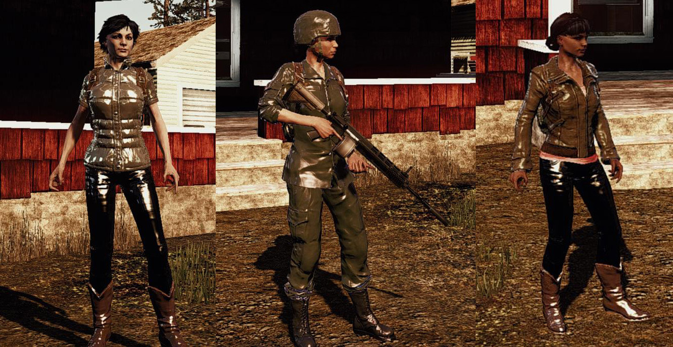 Мод делает текстуры игровой женской одежды блестящей как латекс.Дополнительно подверглась изменению внешность следующих персонажей:Алисья Хукс теперь будет с лицом Беки Колинз, короткой стрижкой и в каске.Мая Торрес переодета в военный камуфляж и каску.Сем Хоффман теперь с внешностью Вены Чо и также переодета в военный камуфляже.Лили Риттер переодета в военный камуфляж.Установка: Извлечь содержимое архива в корневой каталог игры.Удаление: Удалить файлы мода.Автор: Booch007