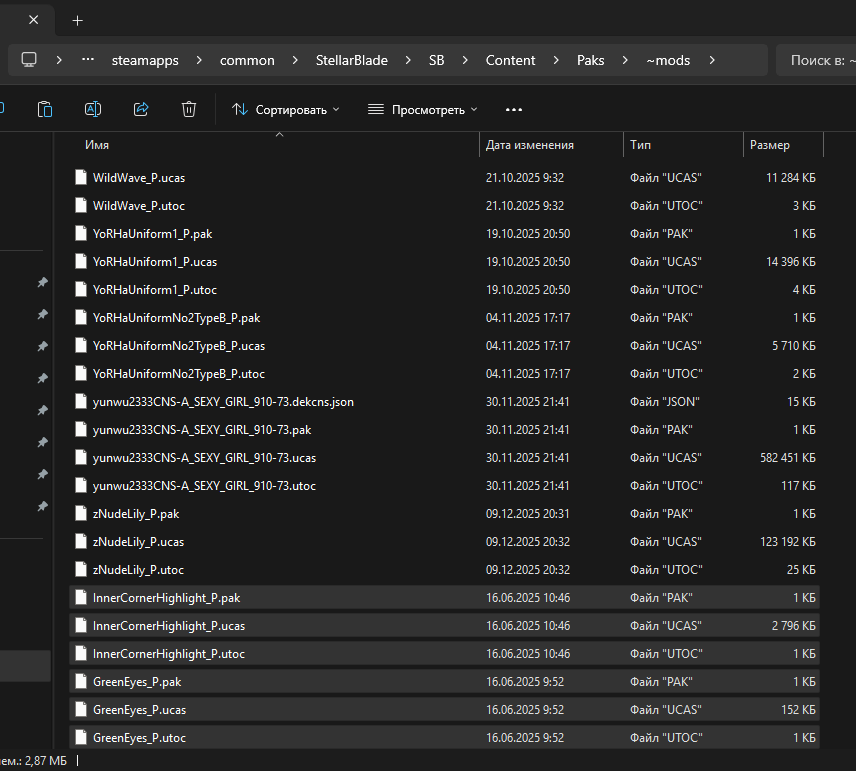 - Разместите извлеченное содержимое в StellarBladeDemo\SB\Content\Paks\~mods..