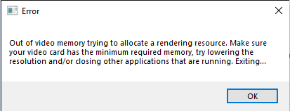 Видеопамяти на хватает прост) Попробуй через файл подкачки расширить