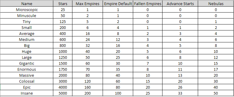 Стандартный мод на карты с различным количеством звёзд. От 25 до 5000 звёзд. В дополнение, карты так же имеют встроенные сбалансированные позиции - расы будут раскиданы не случайным образом по вселенной, а на равном расстоянии друг от друга.