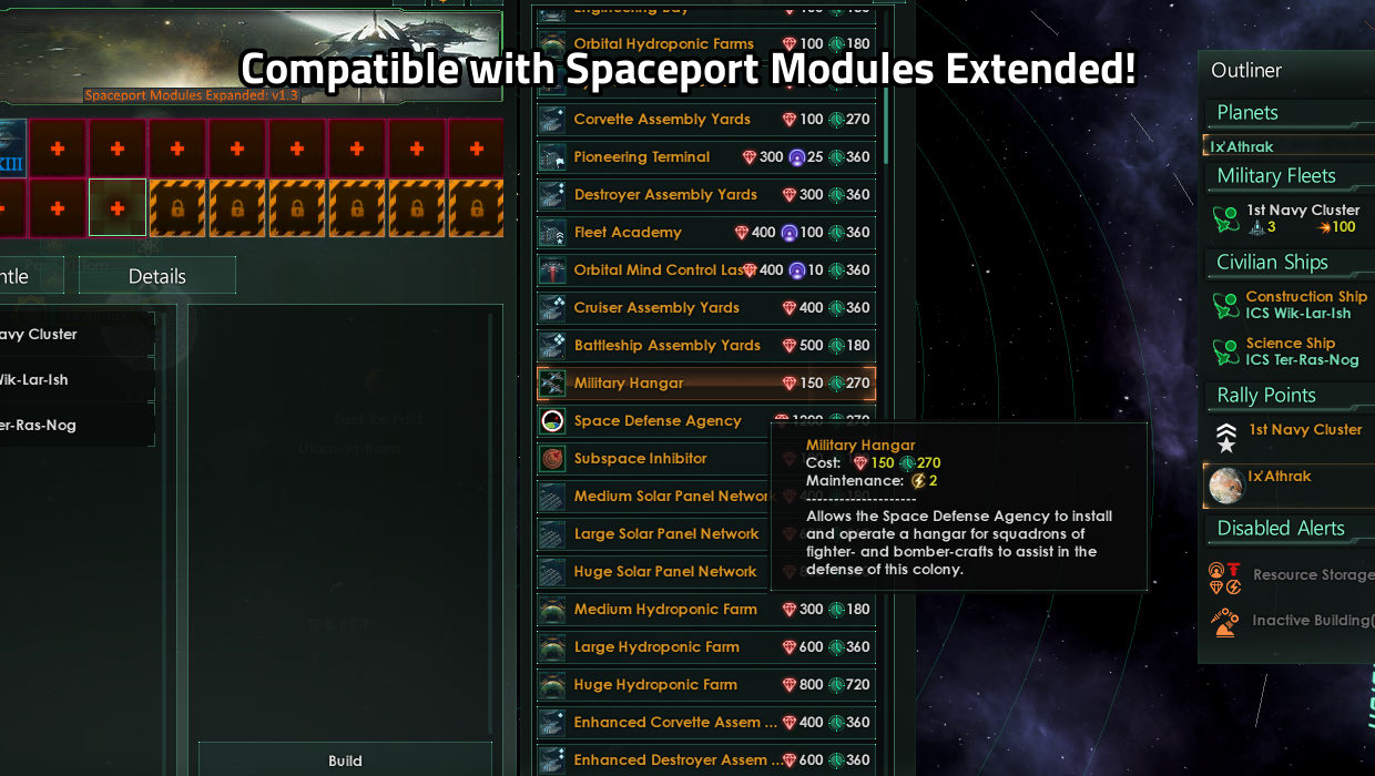 Tiny Spaceport Modules - Данный мод уменьшает список кораблей в космопорте