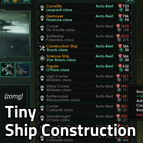 Tiny Ship Construction - Данный мод уменьшает список кораблей в конструкторе