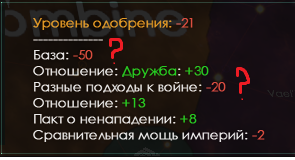 Столкнулся с проблемой, отношения со всеми известными расами хорошие, но ни кому не могу предложить вступить в альянс и меня никто не берет показывая -50 база и разные подходы к войне. Подскажите что означают отмеченные пункты и как их значение увеличить? Спасибо.