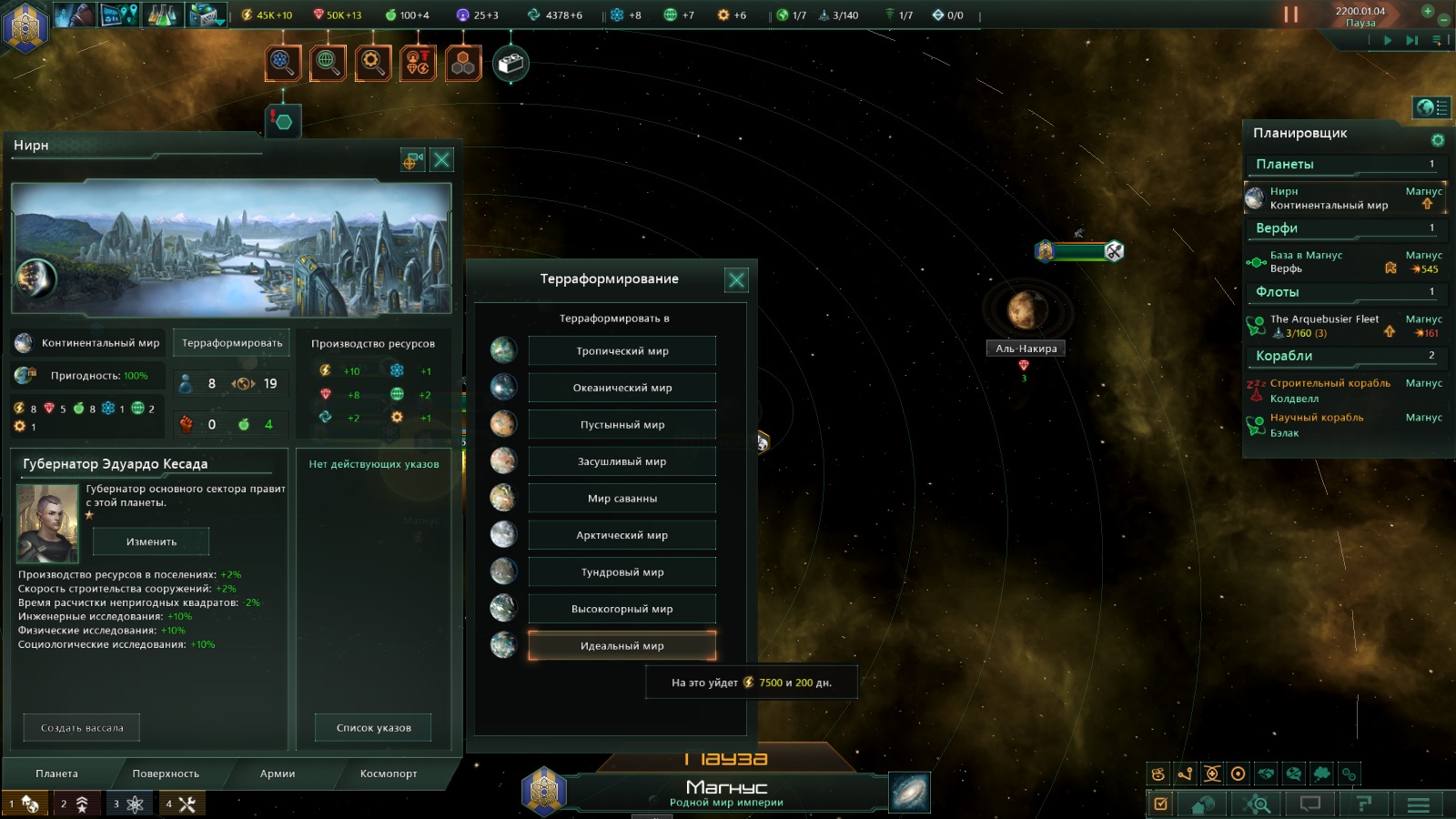 и ресурсы "Терраформирующие жидкости"(-25%).