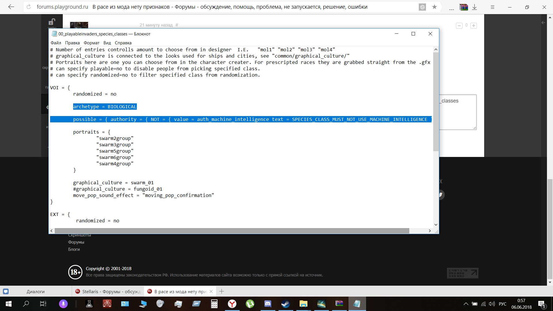 Скачал мод на расу. Однако у самой расы в разделе признаков пусто. Т.е. ничего нету, а признак коллективный разум (добавляемый с коллективным разумом) не работает, т.к. раса должна быть биологической (так же и с машинным разумом). Как можно это исправить? И где и что нужно поменять в архиве мода?