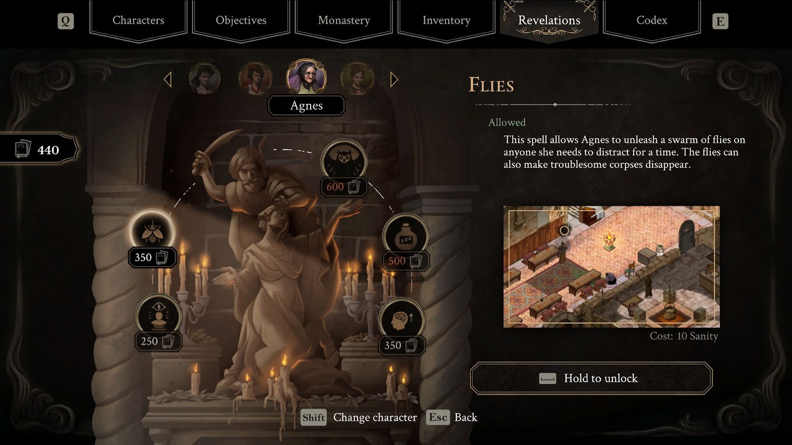 Последним членом «отряда» окажется старушка Агнес — ведьма, способная зажигать и гасить свет, дезориентировать стражу, собирать растения и защищать друзей от призраков. Но почтенный возраст не позволяет ей забираться по лестницам, да и магические предметы, например алтари и зеркала, мешают произносить заклинания.
