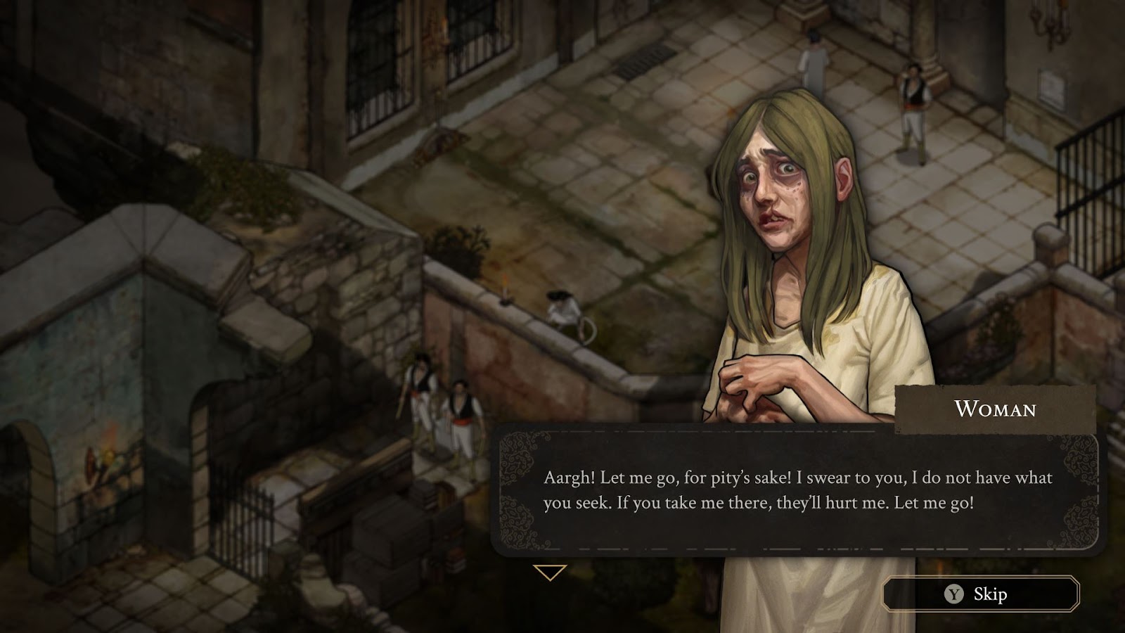 The Stone of Madness опирается на стелс и выстраивает игровой процесс вокруг особенностей каждого героя. Альфредо умеет зажигать свет, отвлекать стражников и пациентов молитвами, прогонять призраков, но совершенно не выдерживает насилия в любом его проявлении. Рядом труп или оглушённая монашка? Лучше подальше отодвинуть героя и спрятать тело в ящик.