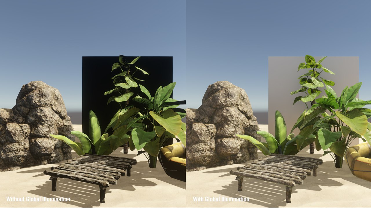 Разработчики раньше указывали на небольшие функции, которые они собираются внедрить в игру. Одна из них - глобальное освещение Unity 5. В основном, новая система позволяет компьютеру предварительно рассчитать данные освещения и использовать их для расчета приблизительного непрямого рассеивания света, основанного на положении солнца в настоящее время. Они только начали рассматривать данную функцию, однако результаты выглядят многообещающе.