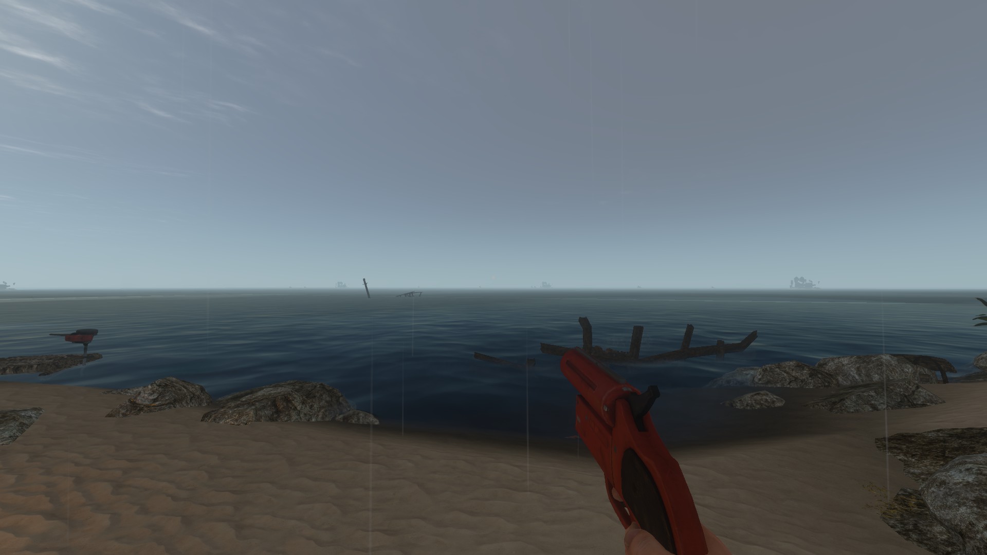 - Сигнальный пистолет :) В будущем назначение понятно, но он стреляет не далее чем на 300 метров и с соседнего острова вряд ли виден :) На скриншоте ниже, сигнал падал на уровне мачты, под каким бы углом я не стрельнул. Надеюсь будет фикс :)