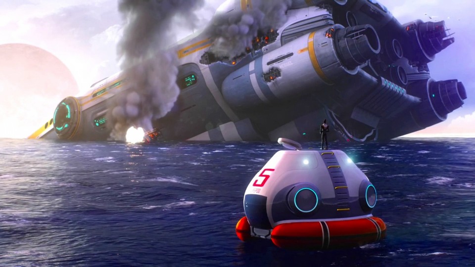 К слову за всё что вы сделаете будь то аптечка, холодильник, или огнетушитель вы автоматом становитесь должны корпорации которой принадлежит Аврора и все находящееся на ней технологии. К стати говоря первое что смутило меня в игре так это бесполезность костюма, в котором вы начинаете играть, судя по сюжету костюм должен быть спасательным но почему то совсем не спасает, от огня в шлюпке он полностью бесполезен ведь точно такой же урон человек мог бы получить и без костюма, на долгое пребывание в воде он тоже не очень то предрасположен, он не держит не удары тока ни зубов рыбы, и что самое любопытное он не выдерживает радиации испускаемой Авророй в окрестностях её крушения, хотя первое от чего должны защищать скафандры в космосе так это от радиации, тем более даже сейчас в наше время есть противорадиационные меры защиты вроде арк, рзк, или демрона что уж говорить о будущем в котором присутствуют межгалактические корабли вроде авроры. Вторым смущением стали сами шлюпки, по мере прохождения мы узнаем о том что десятки спасательных в кавычках шлюпок попросту уничтожены при падении, возникает вопрос их в Китае заказывали, или они бюджетные, как минимум половина планеты покрыта водой, я конечно понимаю что возможно у некоторых отказали турбины но куда подевался старый добрый парашют, да и по всей видимости их делают всё теме же 3д принтерами из всего что попадётся под руку ведь как ещё объяснить то что они лопаются при малейшем прикосновении с твёрдой поверхностью о чём указывают многочисленные обломки. И плюс ко всему у шлюпок нет возможности передвижения, я конечно не говорю про мотор или более того про нормальный реактивный двигатель ведь чего ждать от компании которая вычитает с тебя деньги за аптечки и строит шлюпки из папье маше но весло могли бы и дать.
