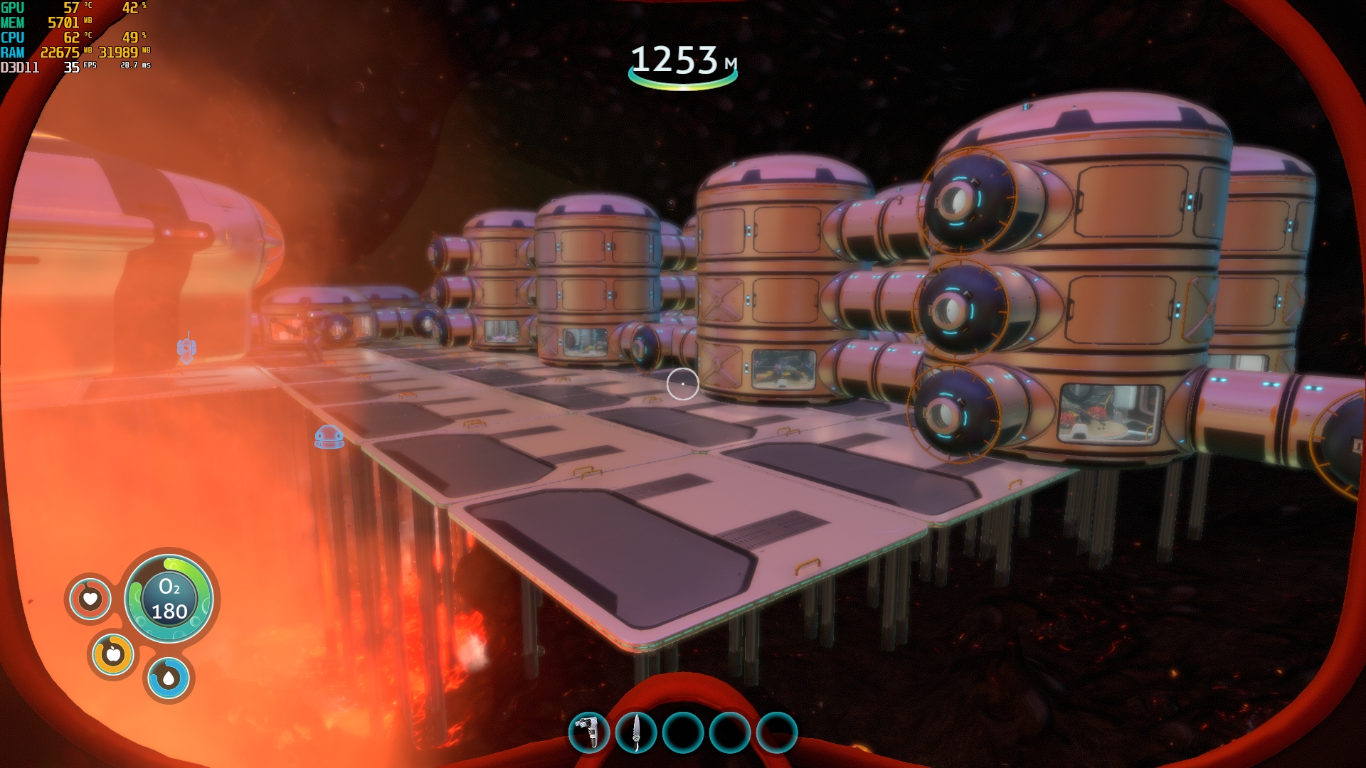 По мере расширения базы, мы наращиваем энергетику. Вначале достаточно солнечных панелей, потом пригодится биореактор или тепловой генератор (весьма эффективно у гейзеров). Ну а под конец появится возможность сооружения даже ядерного реактора. Попутно мы наращиваем свой небольшой флот. Вначале конструируем малый аппарат «Мотылек», по мере сбора чертежей появится доступ к роботизированному костюму «Краб» и главному транспорту — большой подводной лодке «Циклоп». Наращивание этой инфраструктуры тотчас ставит новые задачи по поддержке — нужны шлюзы, нужны зарядные устройства для энергоячеек. Сразу же возникает необходимость тягать с собой ремонтный инструмент, чтобы в любой момент времени восстановить поврежденный корпус.