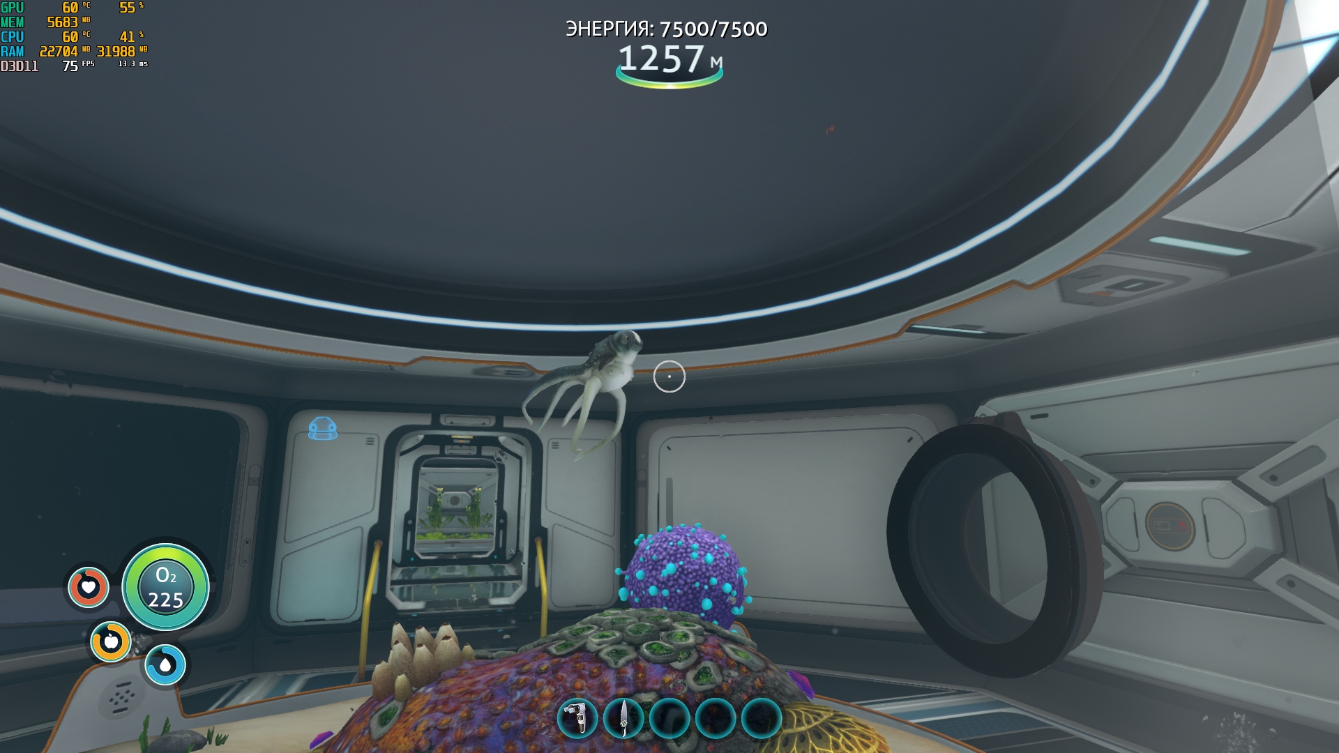 Проблема в том, что за такими сюжетными моментами, которые дают развитие истории, много действий, связанных со строительством и обустройством. Например, нужно построить какой-то транспорт, но нет ресурсов. Начинается поиск руды, редких компонентов. Если заранее не запаслись ими, то придется совершать повторные рейды в старые места. Плюс ограниченный по объему инвентарь не позволяет накапливать много вещей, а с собой еще надо тягать съестные припасы и воду. Даже создание подводной лодки не является некой точкой успокоения, ведь ее начальная глубина погружения лишь 500 метров. Нужны дополнительные модули улучшения, и, значит, нужны новые поиски, которые могут дать новые чертежи для апгрейда. Вернулись на базу после длительного приключения? Нужно разобраться с собранным добром, пополнить припасы, зарядить батарейки и ячейки. Это вроде бы и занимательная возня, но в ней есть элемент рутины. Хотя такое присуще всем играм про выживание, и вряд ли стоит за это ругать Subnautica.