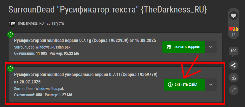 - Файл SurrounDead-Windows_Rus.pak можно не удалять (желательно обновлять).