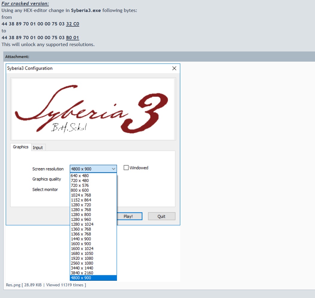 - Открываем Syberia3.ехе в HxD или другим бесплатным шестнадцатеричным редактором находим там 39 8E E3 3F и заменяем на: