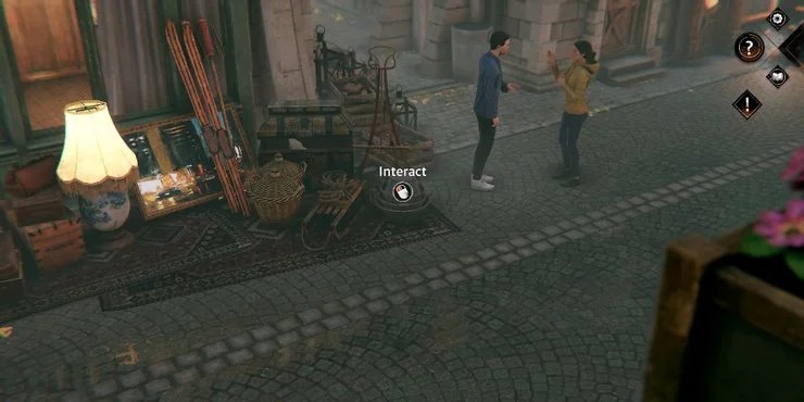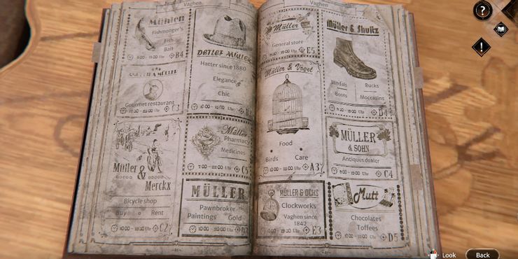 После ролика, в котором Кейт слушает разговор своих попутчиков, вы сможете сколько угодно наслаждаться видами Вагена, прежде чем выбрать «Продолжить » , чтобы выйти из трамвая. Как только вы выйдете, идите по улице , пока не увидите антикваров Мюллера и Зона слева от вас. На двери есть записка , которая помогает магазину выделиться среди других поблизости.