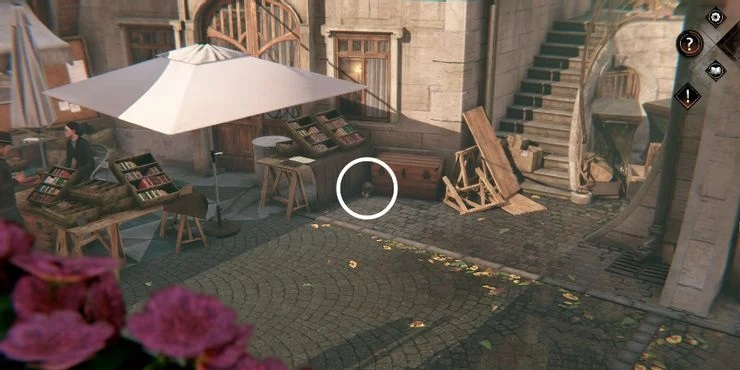 Когда Кейт достигает вершины лестницы, Оскар перепрыгивает через перила на улицу внизу. Когда игра переключится на вид от первого лица, ищите Оскара через дорогу и слева от вас, возле простого деревянного ящика.