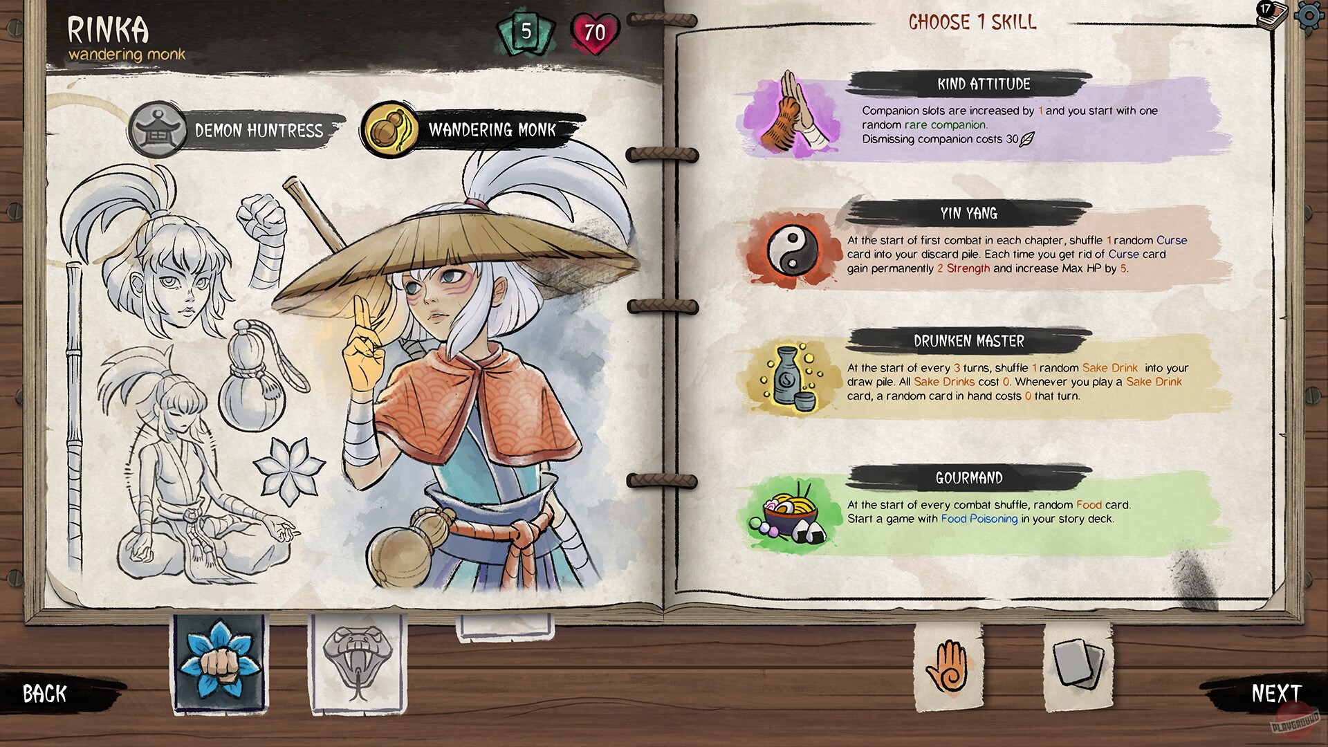 У вас есть герой, который будет исполнять вашу историю на деле. Вы можете выбрать одного из трёх героев, каждый из которых имеет свой характер, свои сильные и слабые стороны, свои карты и свои секреты.