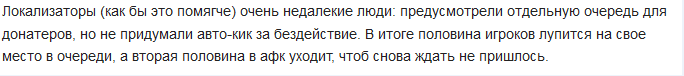 А ведь могли бы ввести авто-kick через 15 минут онлайна, а не скапливать на серверах толпы АФКашеров.