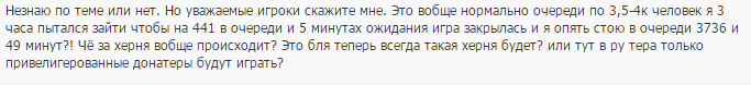 На самом то деле не самый плохой старт для рашки, если сравнить с АА и мылом. А очереди всегда были, на любых подобных проектах. Через недельку ажиотаж спадет. Вспоминается старт л2 классик на корее, где очереди были поболее чем в ру тере, хотя игре уже огого солько лет.