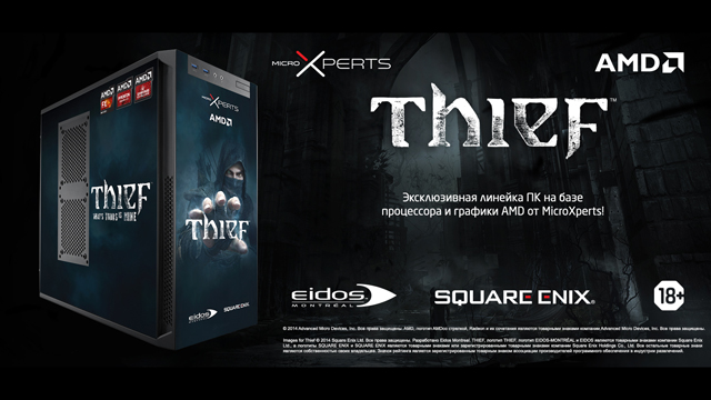 Компания AMD совместно с крупнейшим российским ритейлером электроники Юлмарт представила новую лимитированную серию в линейке ПК от MicroExperts: Thief Limited Edition. Новый игровой ПК эффектно декорирован изображениями Гаррета, главного героя игры Thief, а также оснащен мощным аппаратным обеспечением от компании AMD.