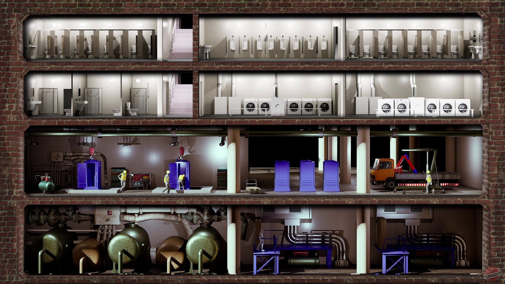 Главная забота в игре — чистота туалетов. Грязь отпугивает посетителей, так что приходится либо самому браться за швабру (это реализовано как мини-игра), либо нанимать уборщиков. Со временем можно поставить автоматические системы очистки, освежители воздуха и даже включить музыку для клиентов.