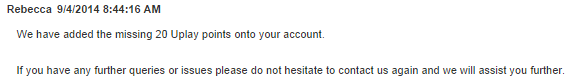 Всем привет, подскажите пожалуйста, решил добрать себе 100 баллов, чтобы купить wildlands со скидкой. Зашёл в игры, которые давали в честь 30-летия: ассассин 3 и фар край блуд драгон, хотел собрать недостающие 25 баллов. Выполнил задания, ачивки засчитались, в игре выскакивало окошко, типа действие выполнено. Но когда вышел из игры, то увидел, баллов как было 75, так и осталось, в действиях галочек нет, а ачивки все есть. Хотел бы с вами посоветоваться, это глюк юплэй или из-за того, что типа игры бесплатные